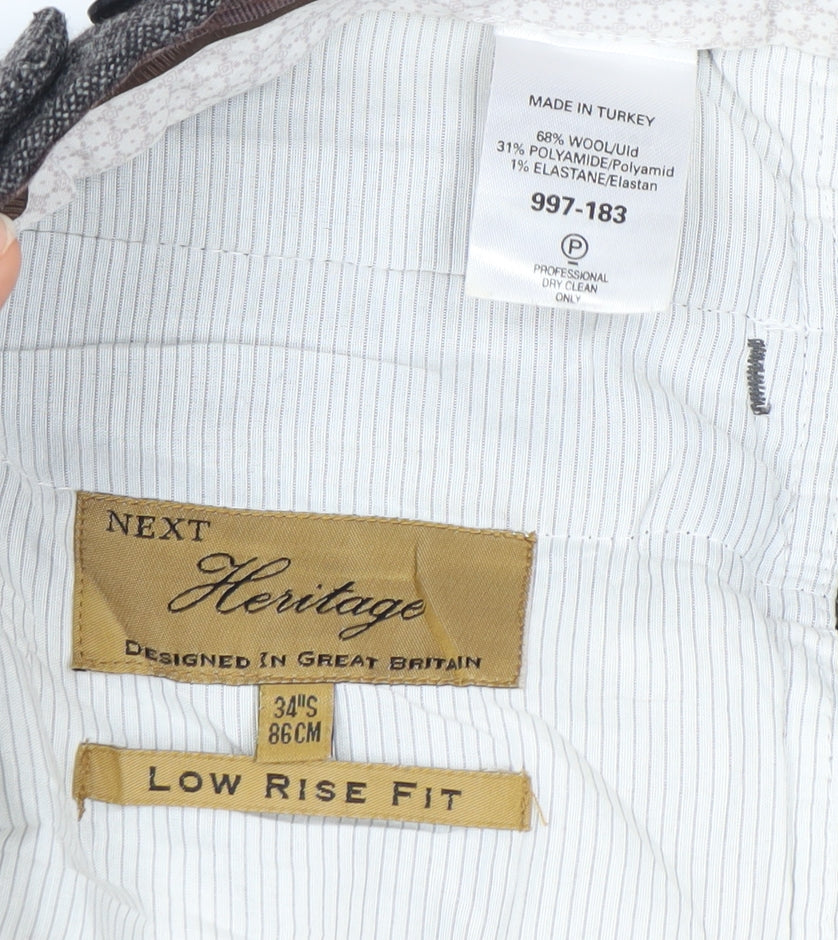 Next Men’s Grey Herringbone Wool Slim Fit Dress Trousers 34S