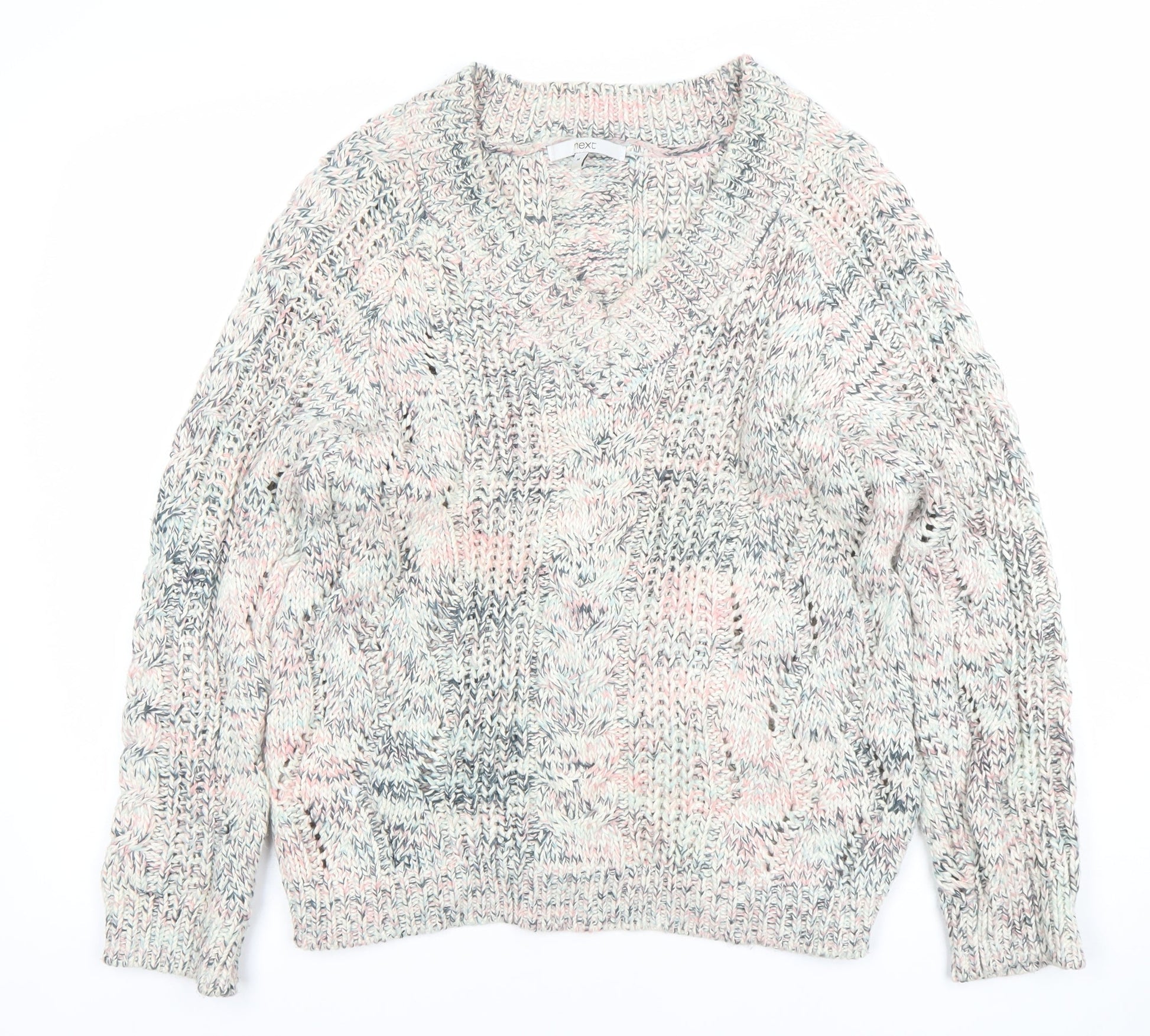 Next Men’s Multicoloured Cable-Knit V-Neck Jumper Size M