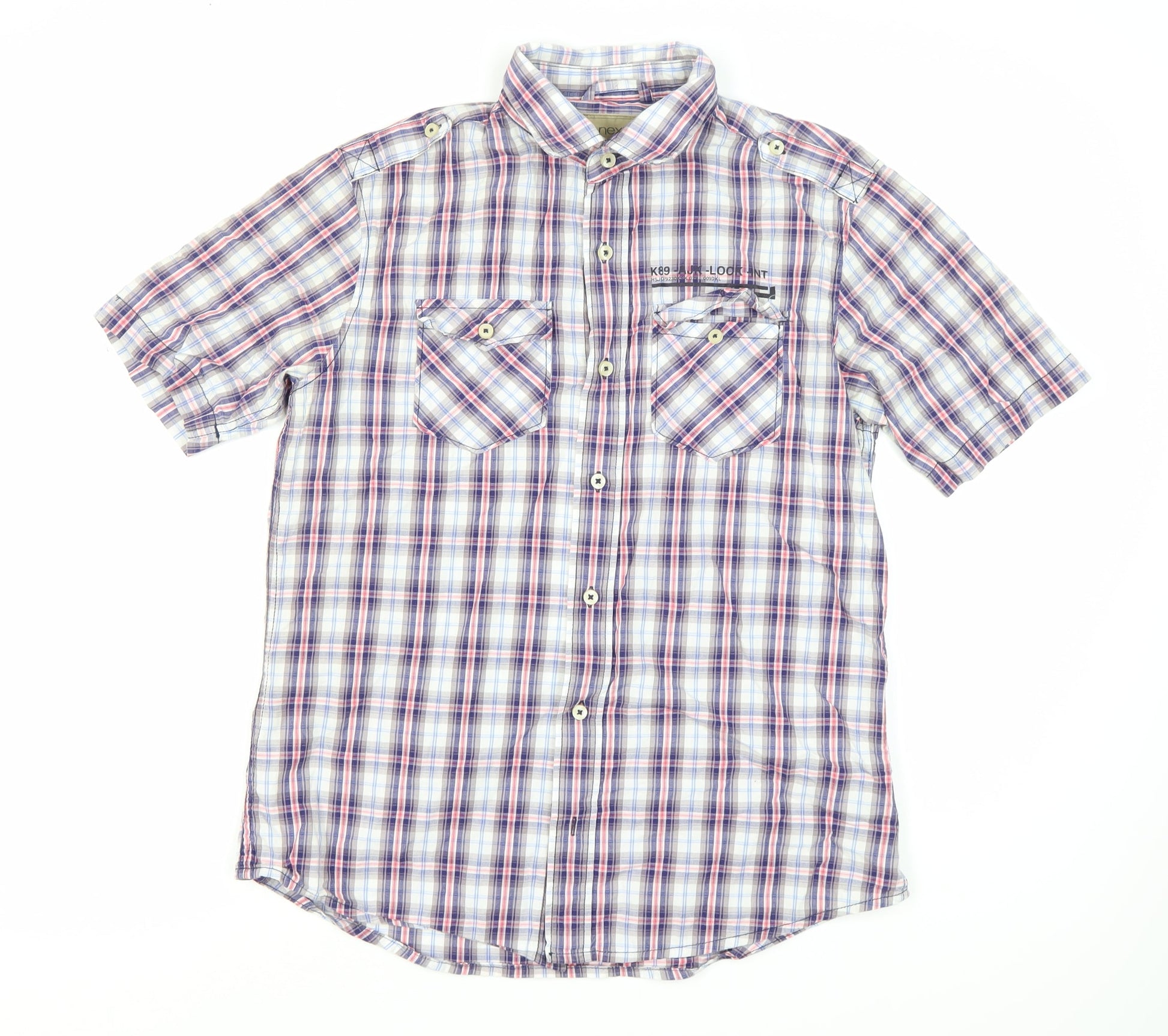 Next Men’s Multicoloured Plaid Short Sleeve Shirt M