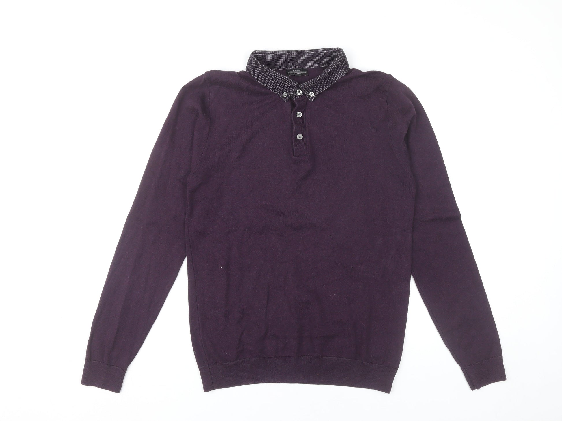 Next Men’s Purple Cotton Collared Henley Jumper Size S