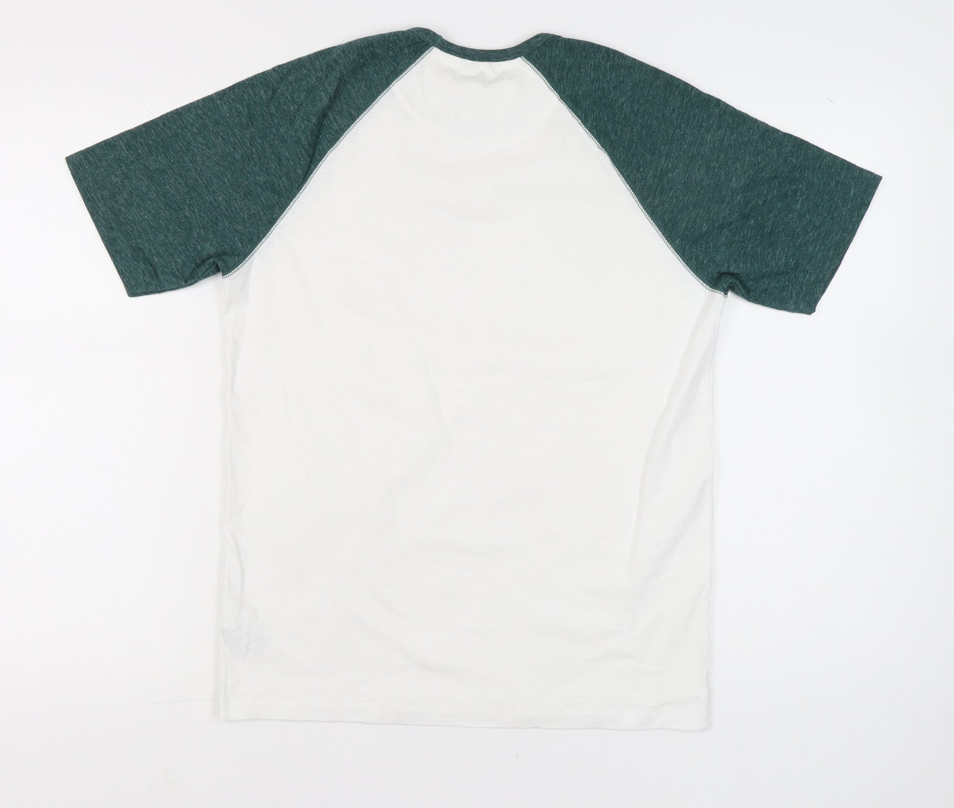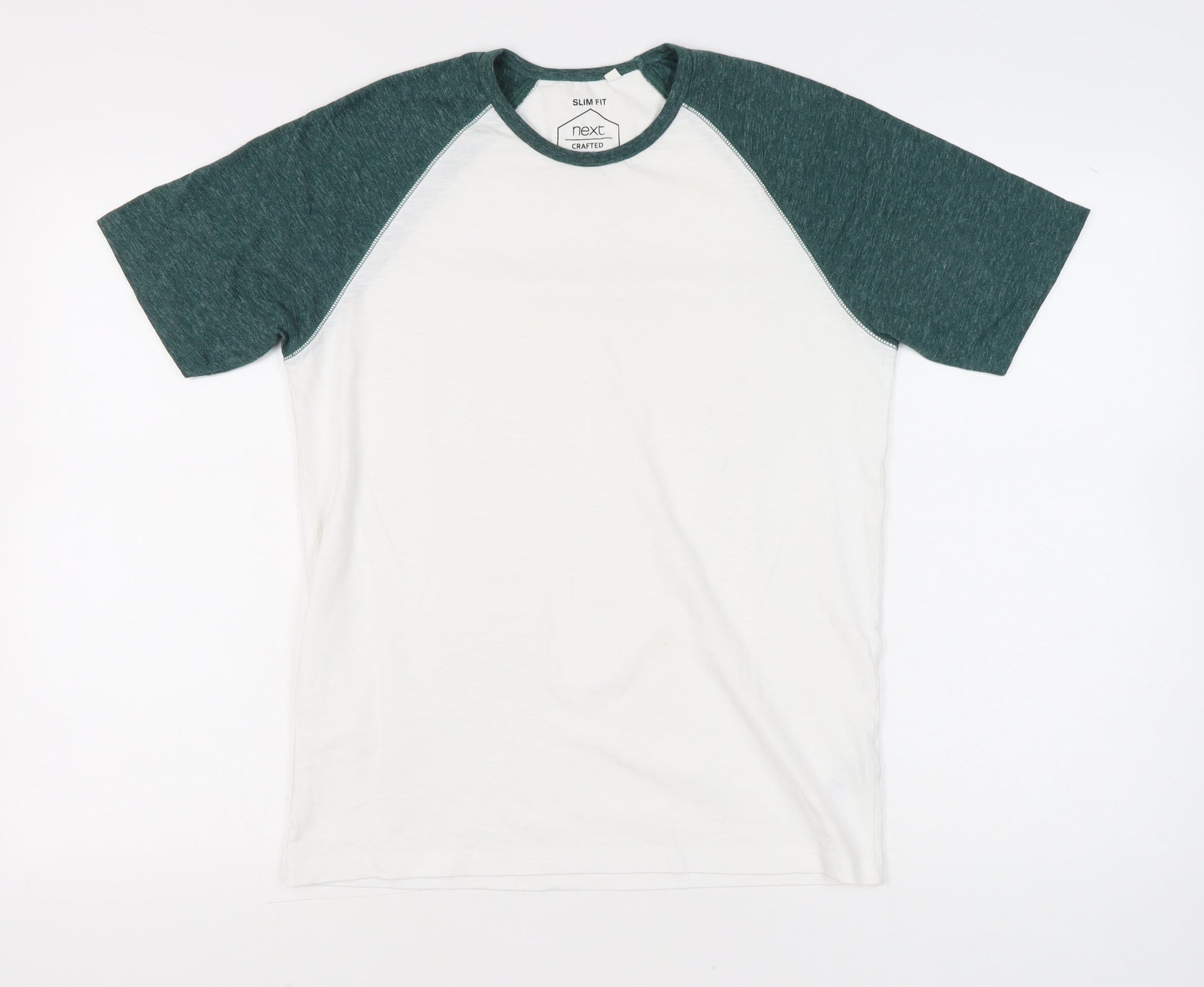 Next Men’s Slim Fit White Green Raglan Short Sleeve T-Shirt Size M