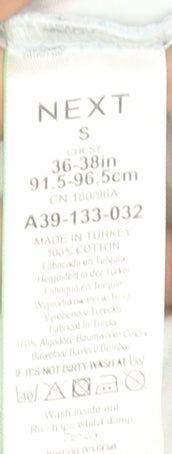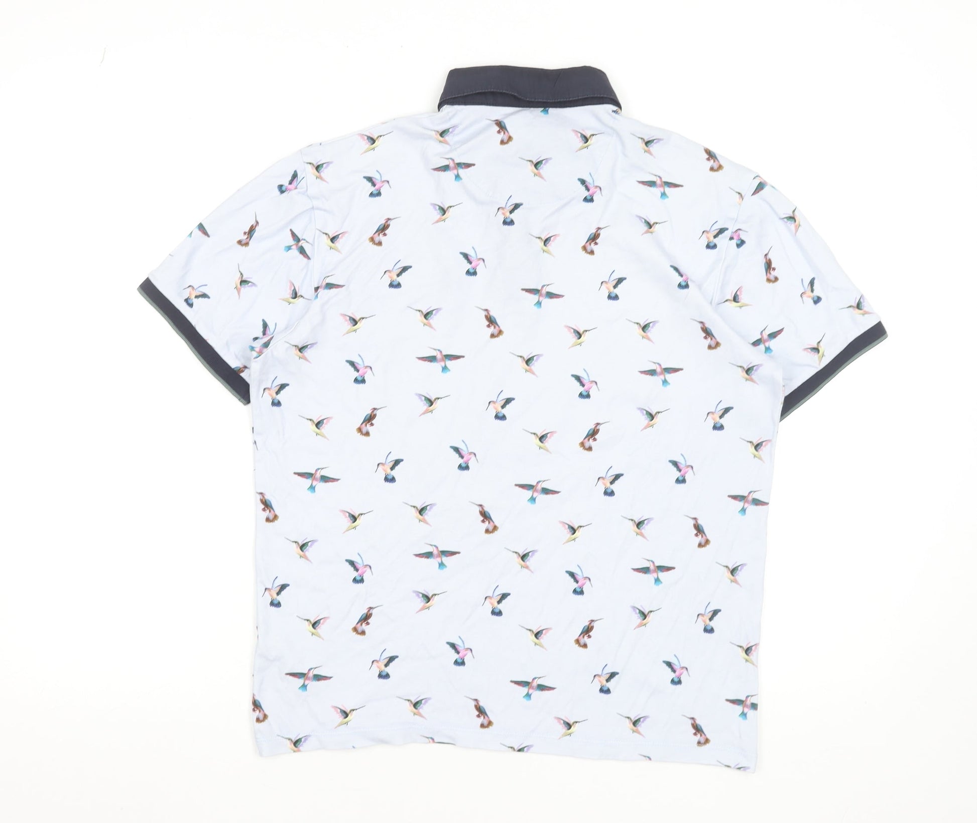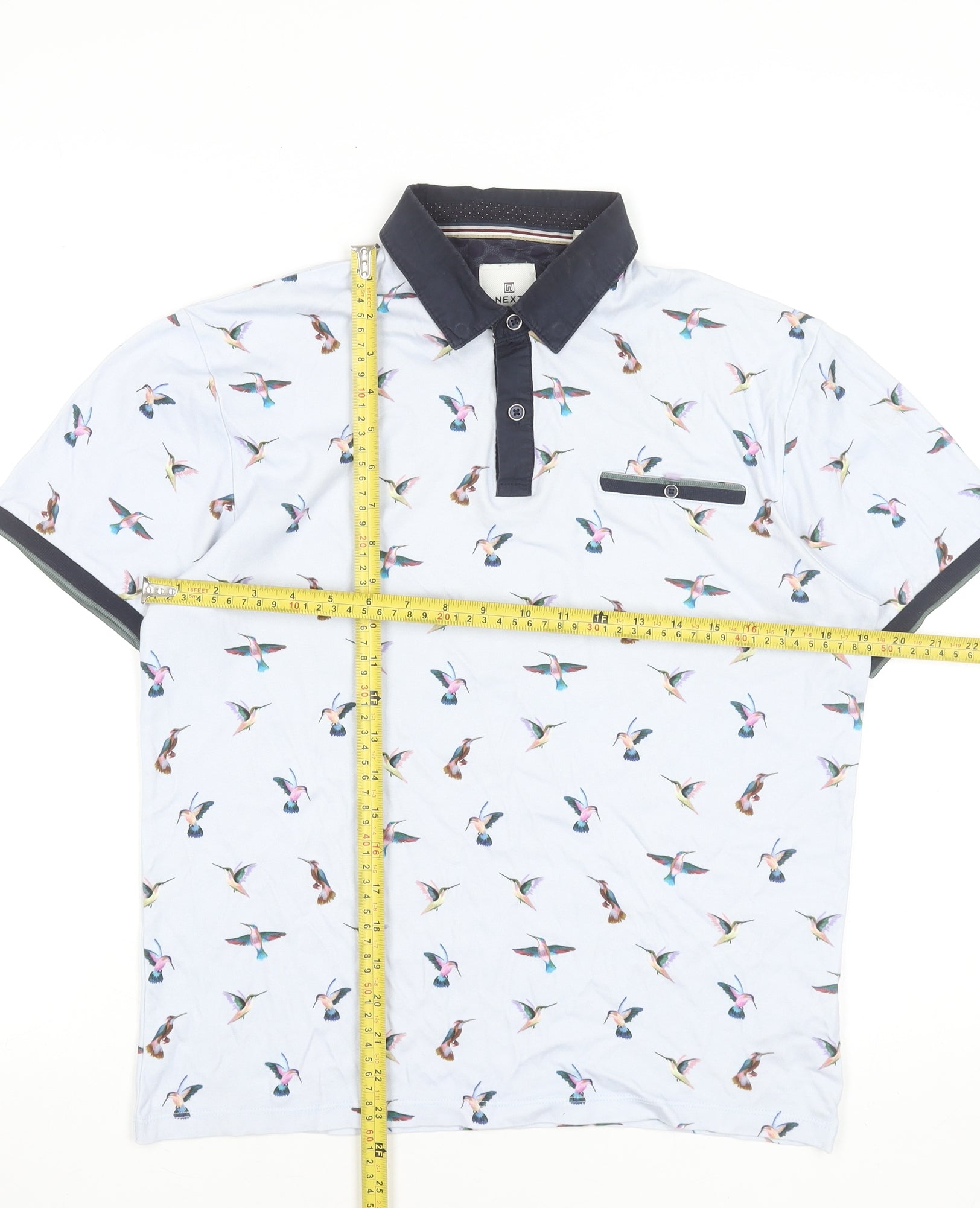 Next Men’s White Bird Print Cotton Short Sleeve Polo Shirt Size S