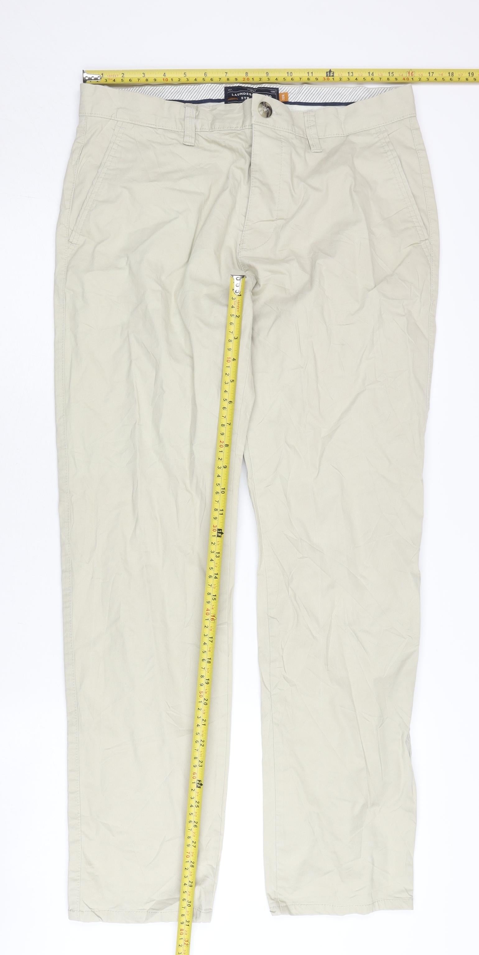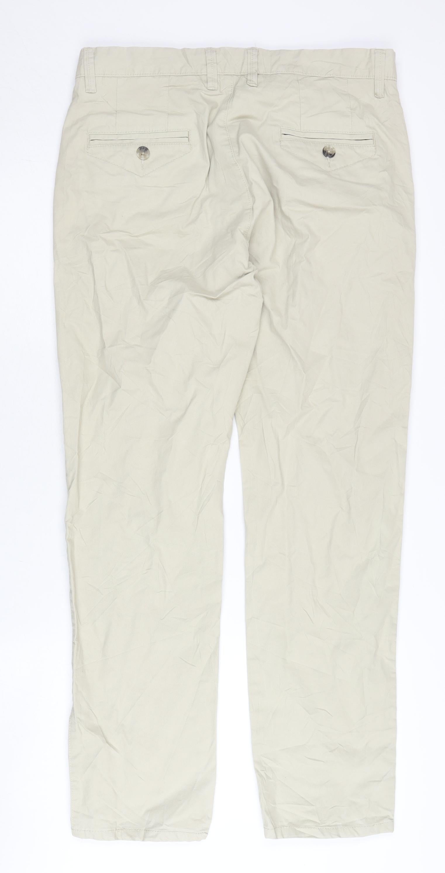 Next Men's Beige 32R Straight Fit Chino Trousers with Belt