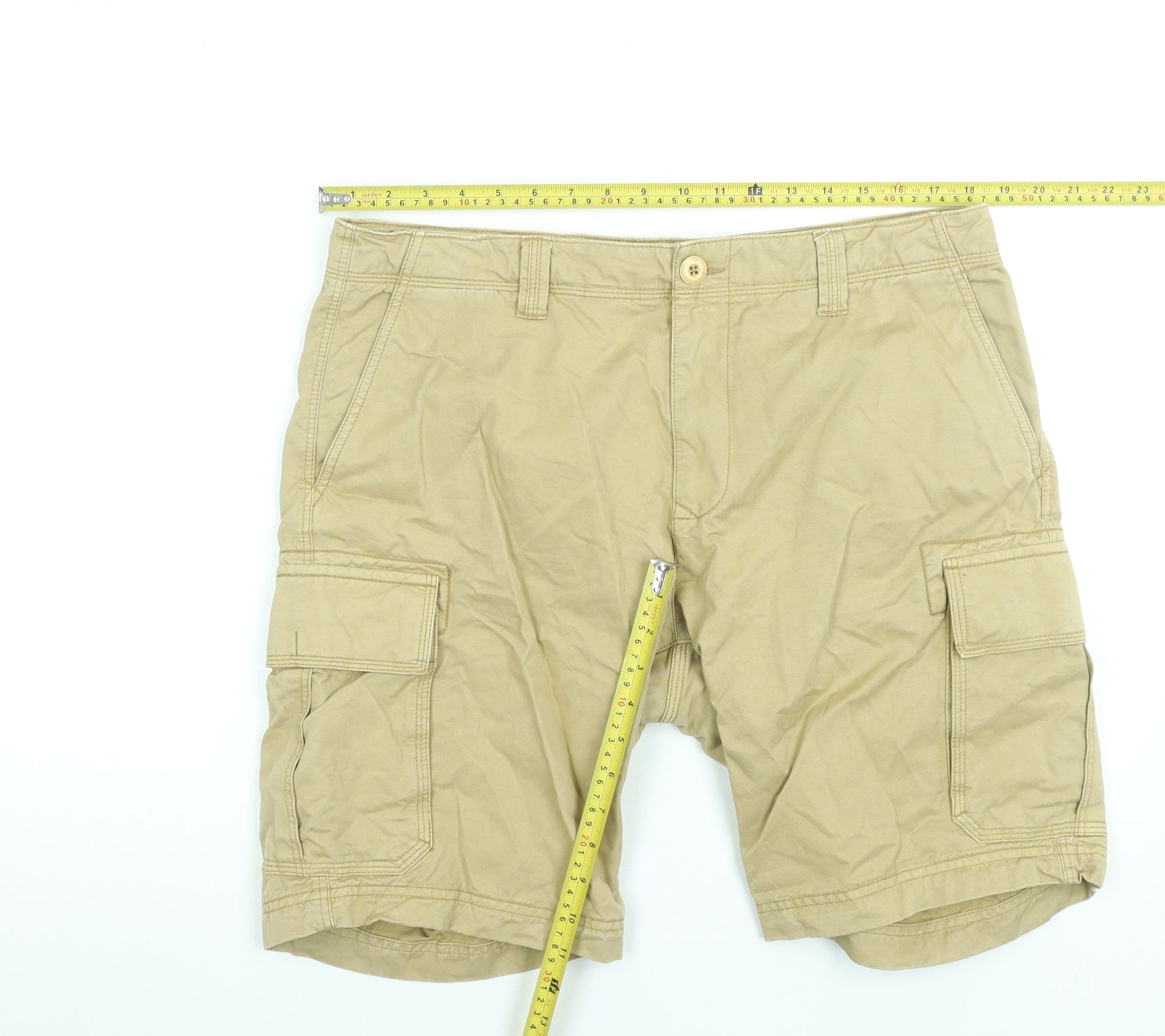 Next Men's Beige Cargo Shorts Size 34 Regular Cotton Belted Summer