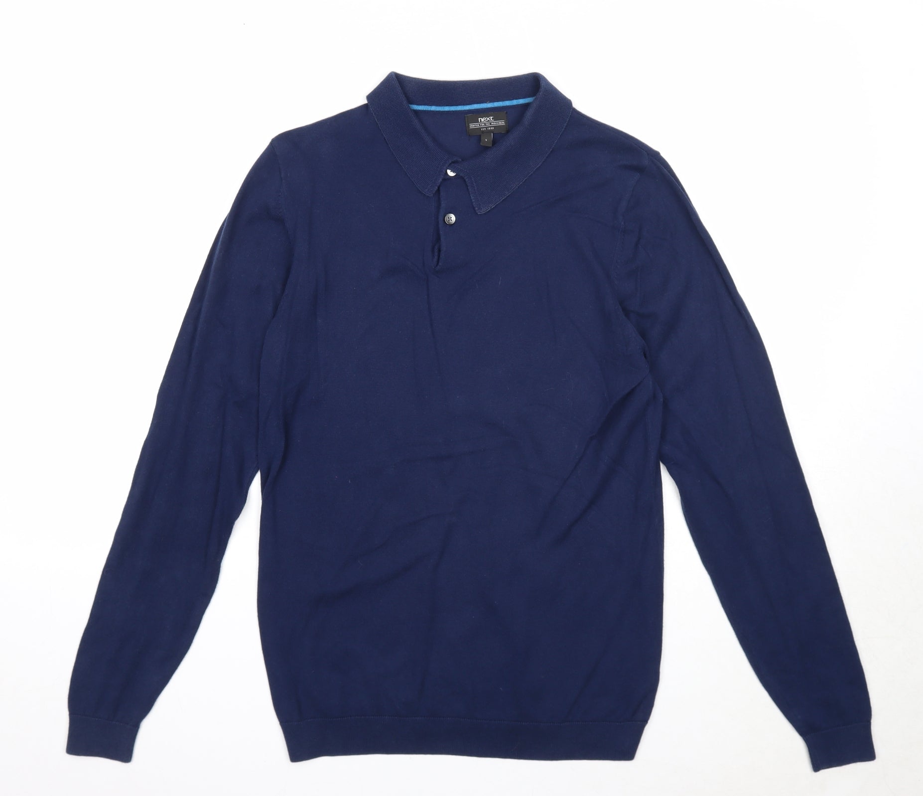 NEXT Mens Black Collared Cotton Pullover Jumper Size S Long Sleeve