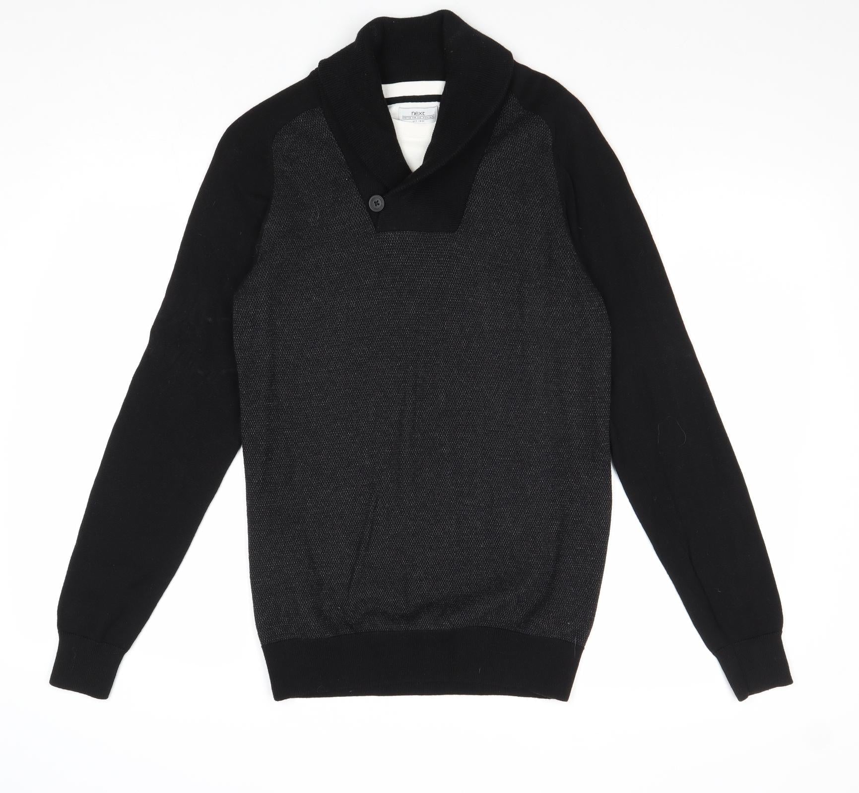 NEXT Mens Black Collared Cotton Pullover Jumper Size S Long Sleeve