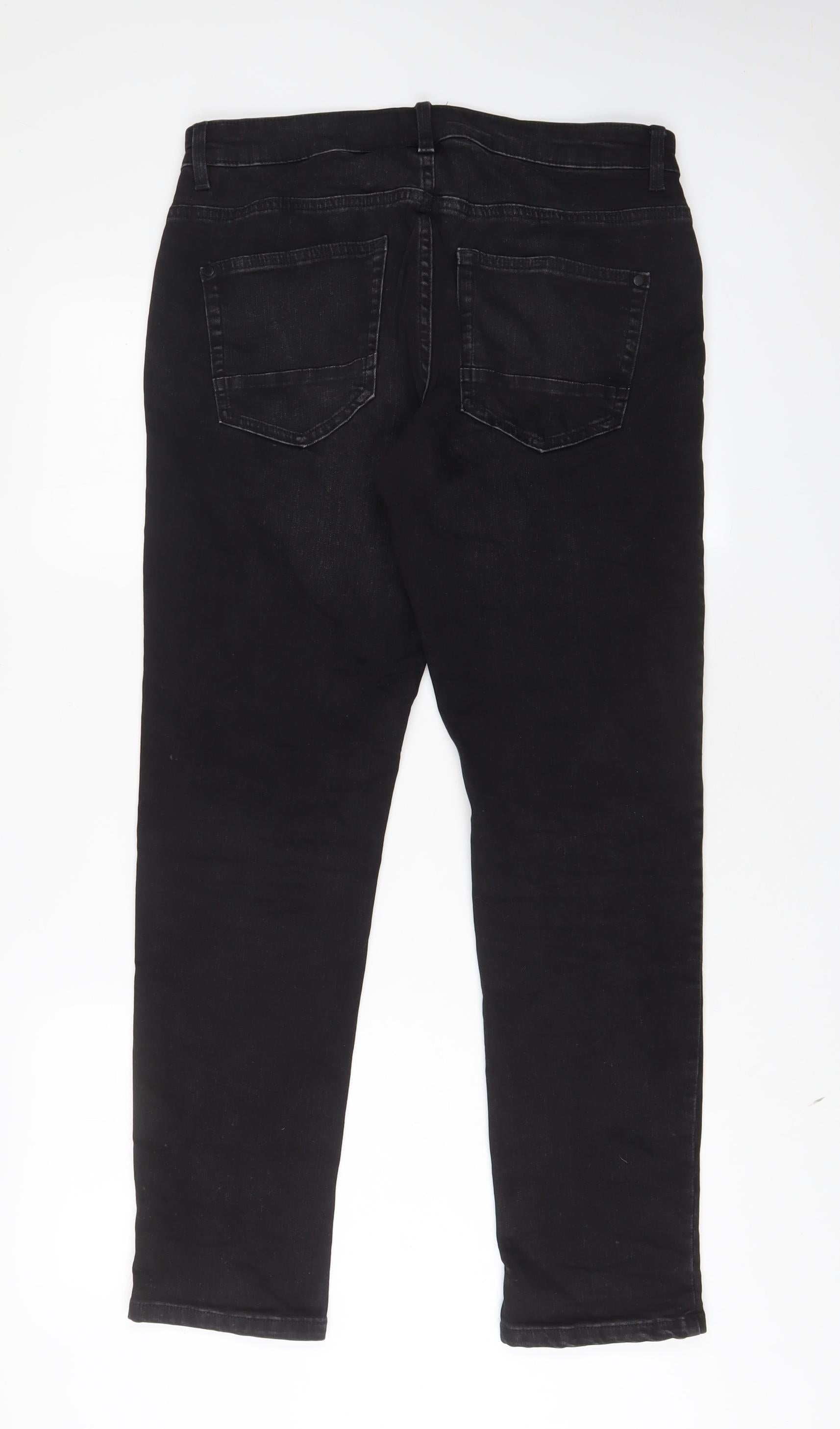 NEXT Mens Black Cotton Straight Jeans Size 32 in L31 in Slim Button