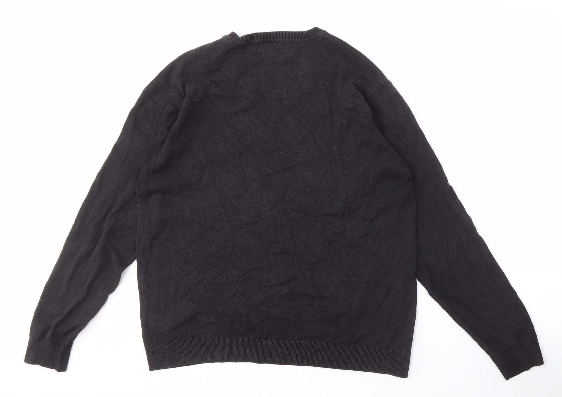 Next Men's Black Cotton V-Neck Pullover Jumper - L