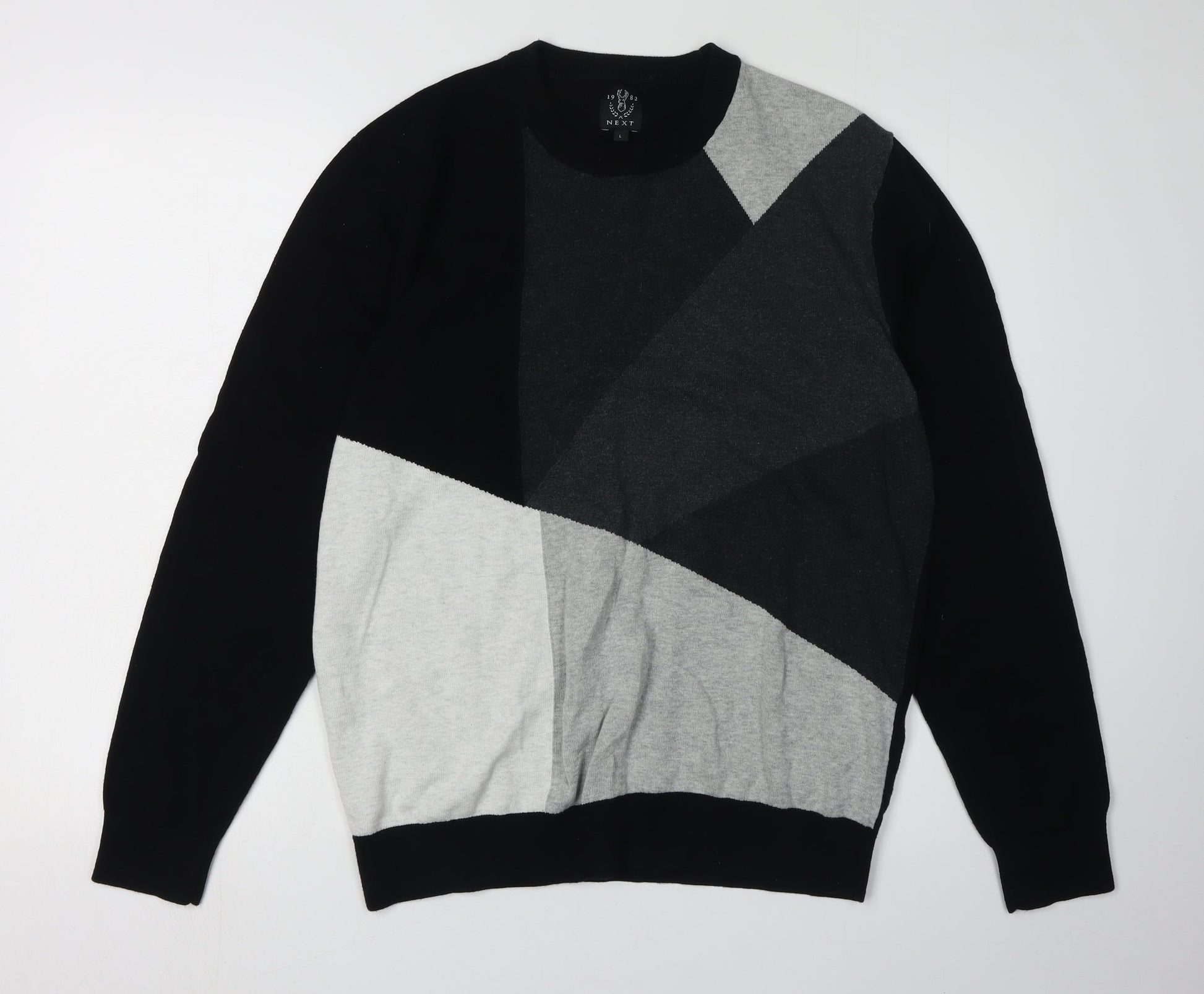 Next Men's Black Geometric Pullover Jumper, Size L