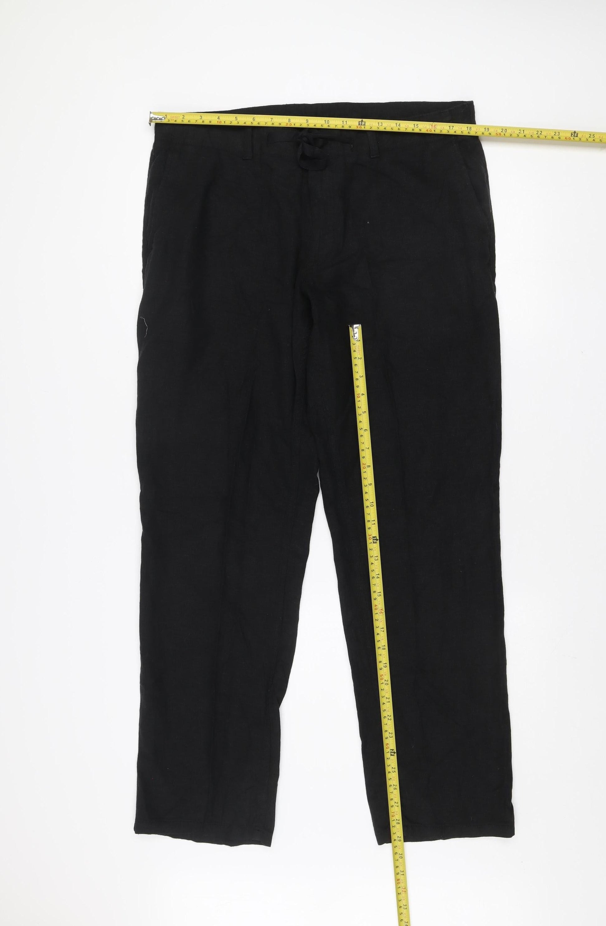 Next Men's Black Linen Blend Chino Trousers 34W 31L Regular Fit