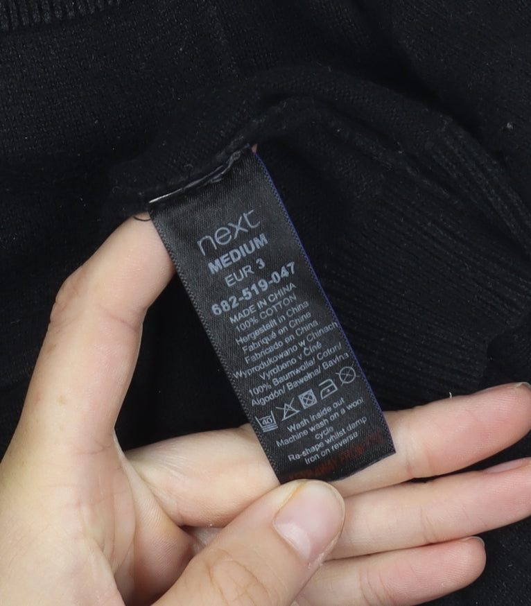 Next Men's Black Pullover Jumper, Medium Size, Collared Neckline
