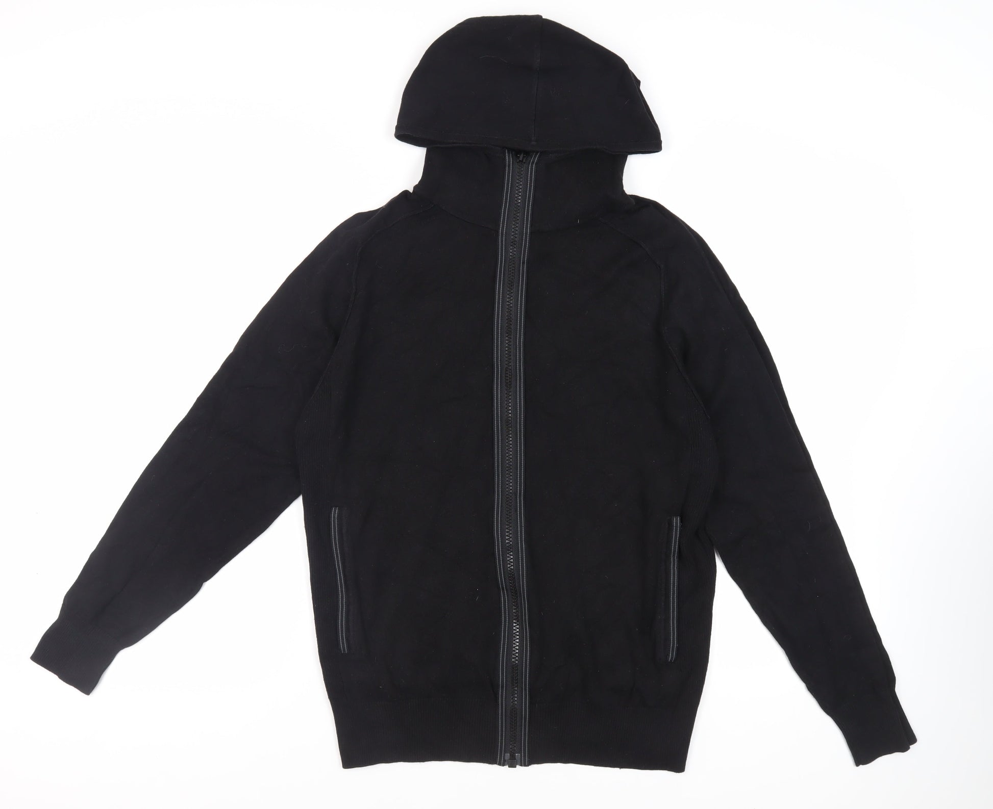 NEXT Mens Black Round Neck Cotton Full Zip Jumper Size L Long Sleeve - Pockets
