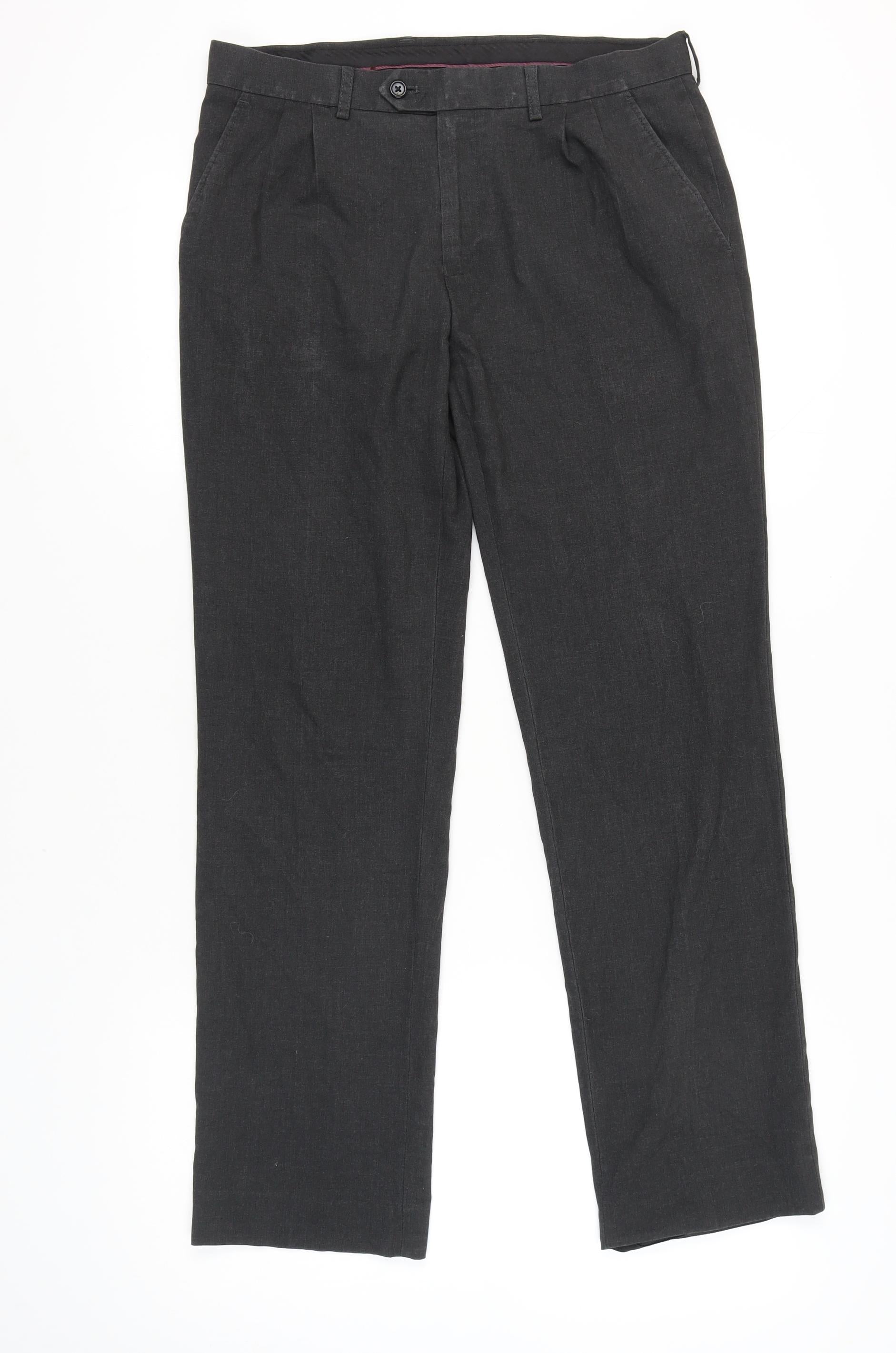 Next Men's Black Straight Leg Pleated Business Trousers 32W 31L