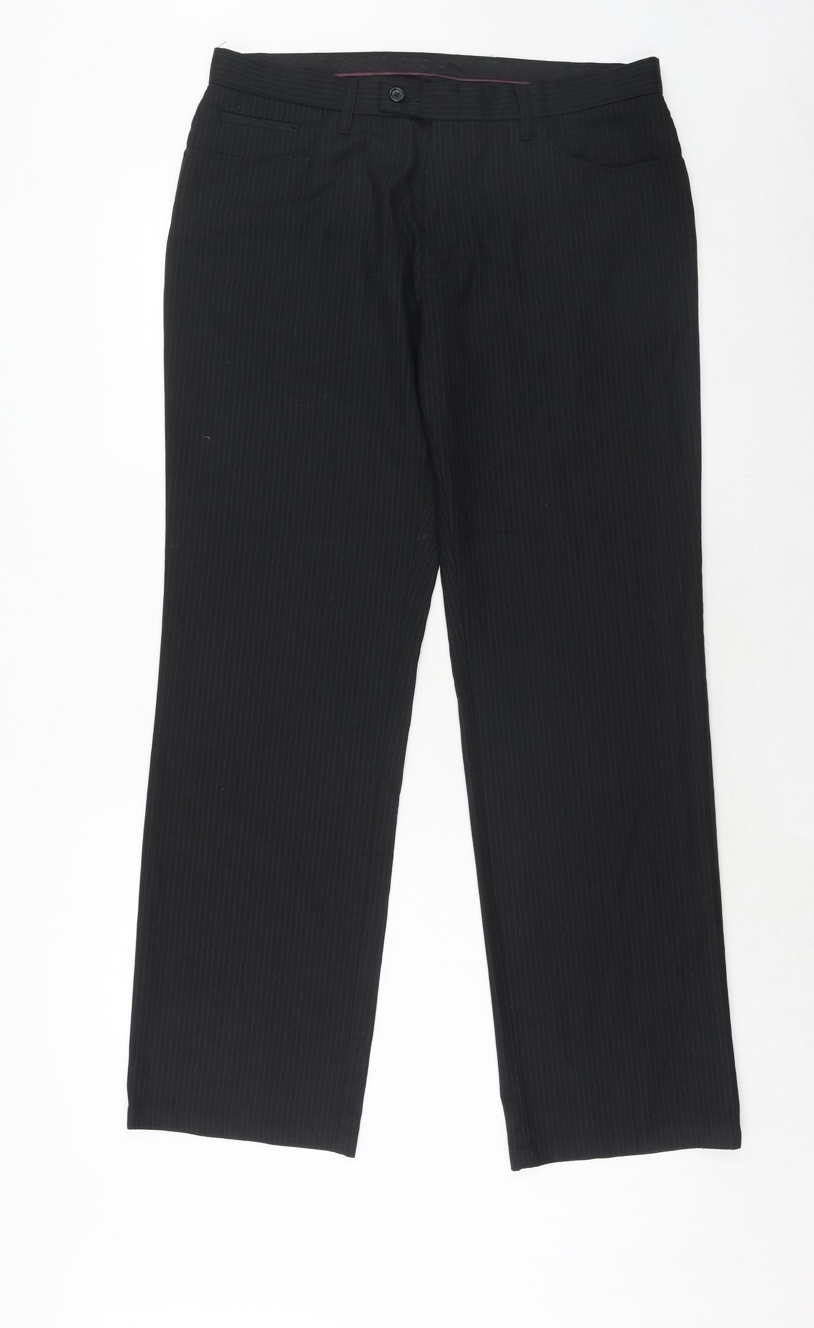 NEXT Mens Black Striped Polyester Dress Pants Trousers Size 34 in Regular Hook & Eye