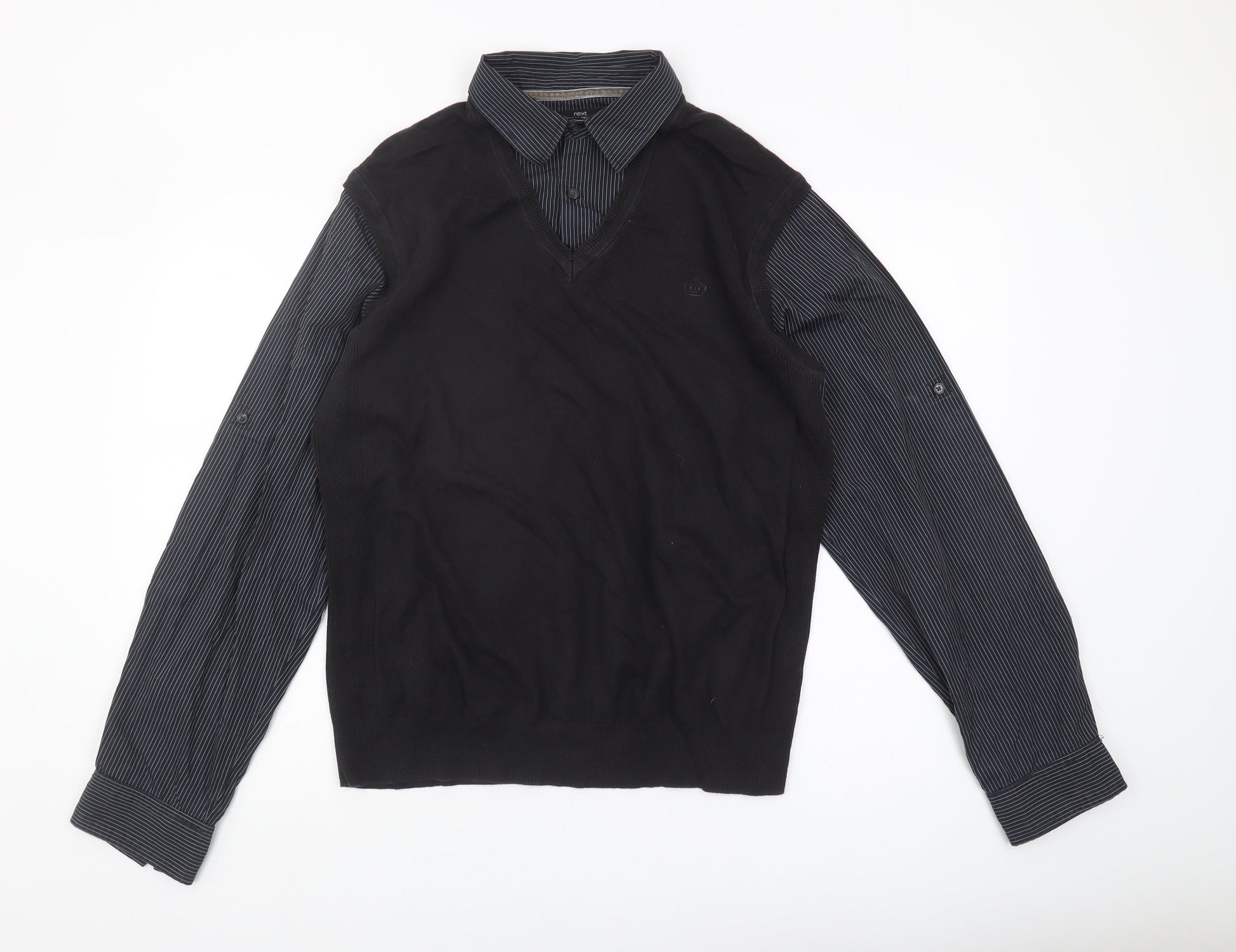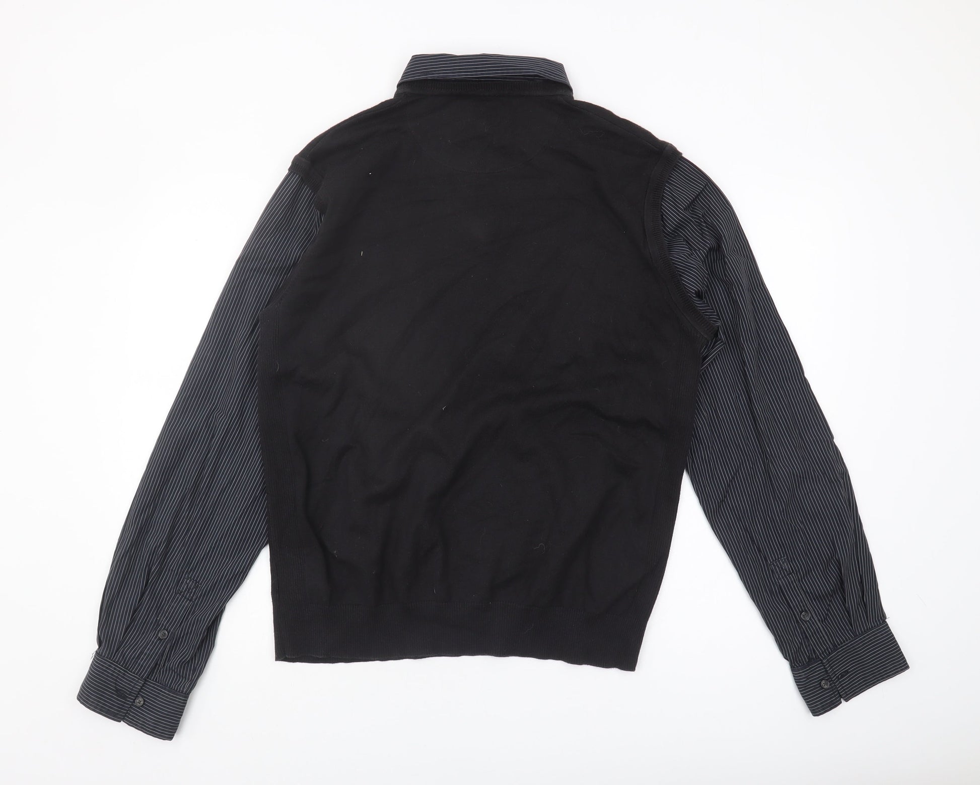 Next Men's Black V-Neck Jumper, Size L, Striped