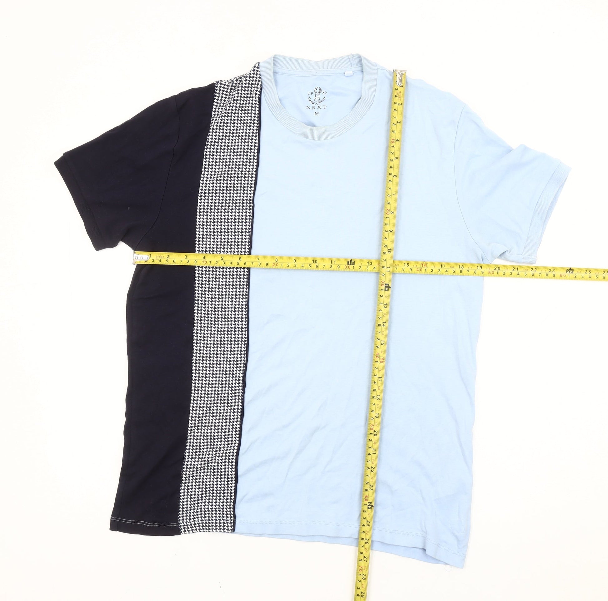 Next Men's Blue Black Colourblock Check Short Sleeve T-Shirt M