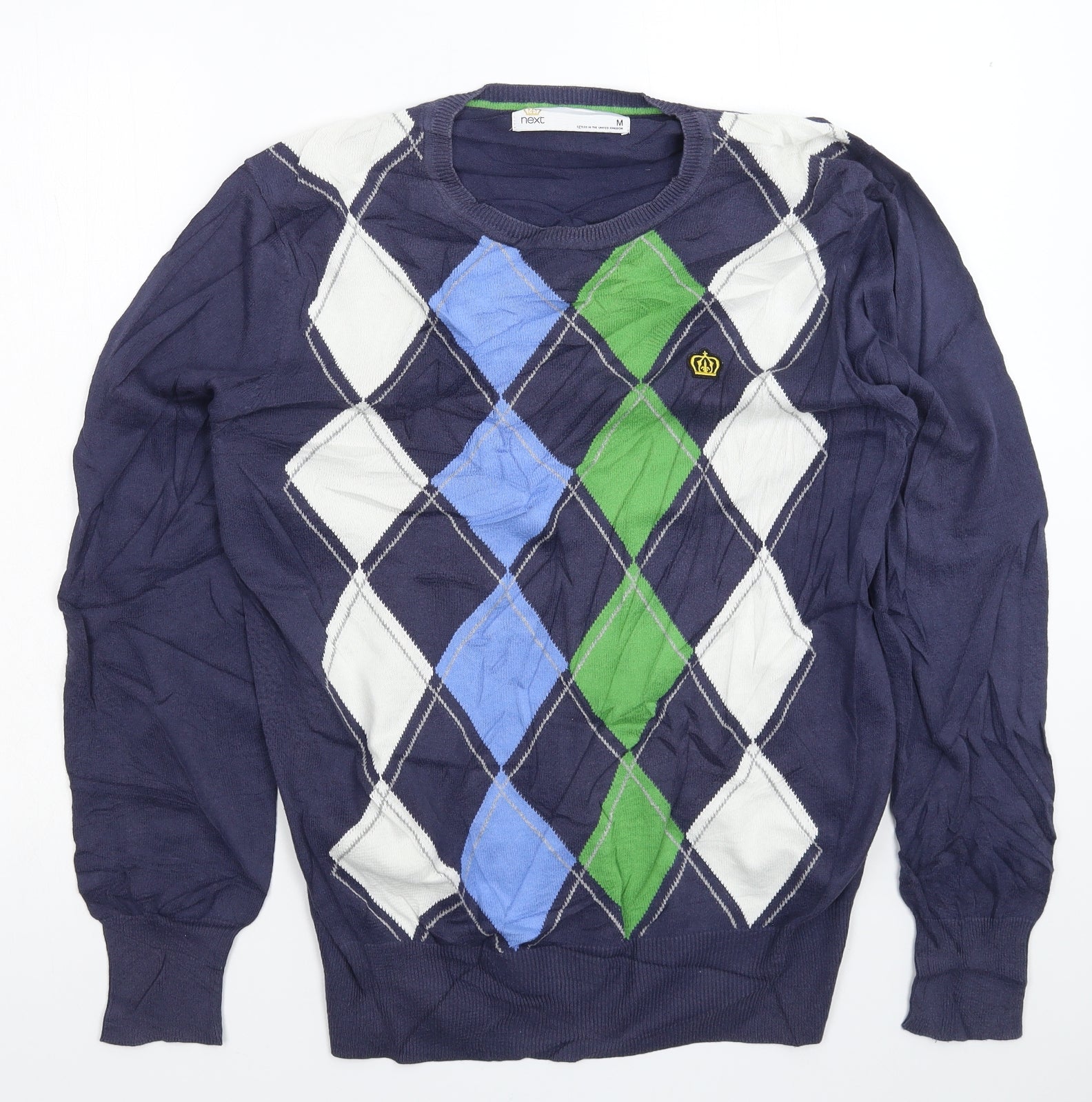 NEXT Mens Blue Check Knit Pullover Jumper Size M
