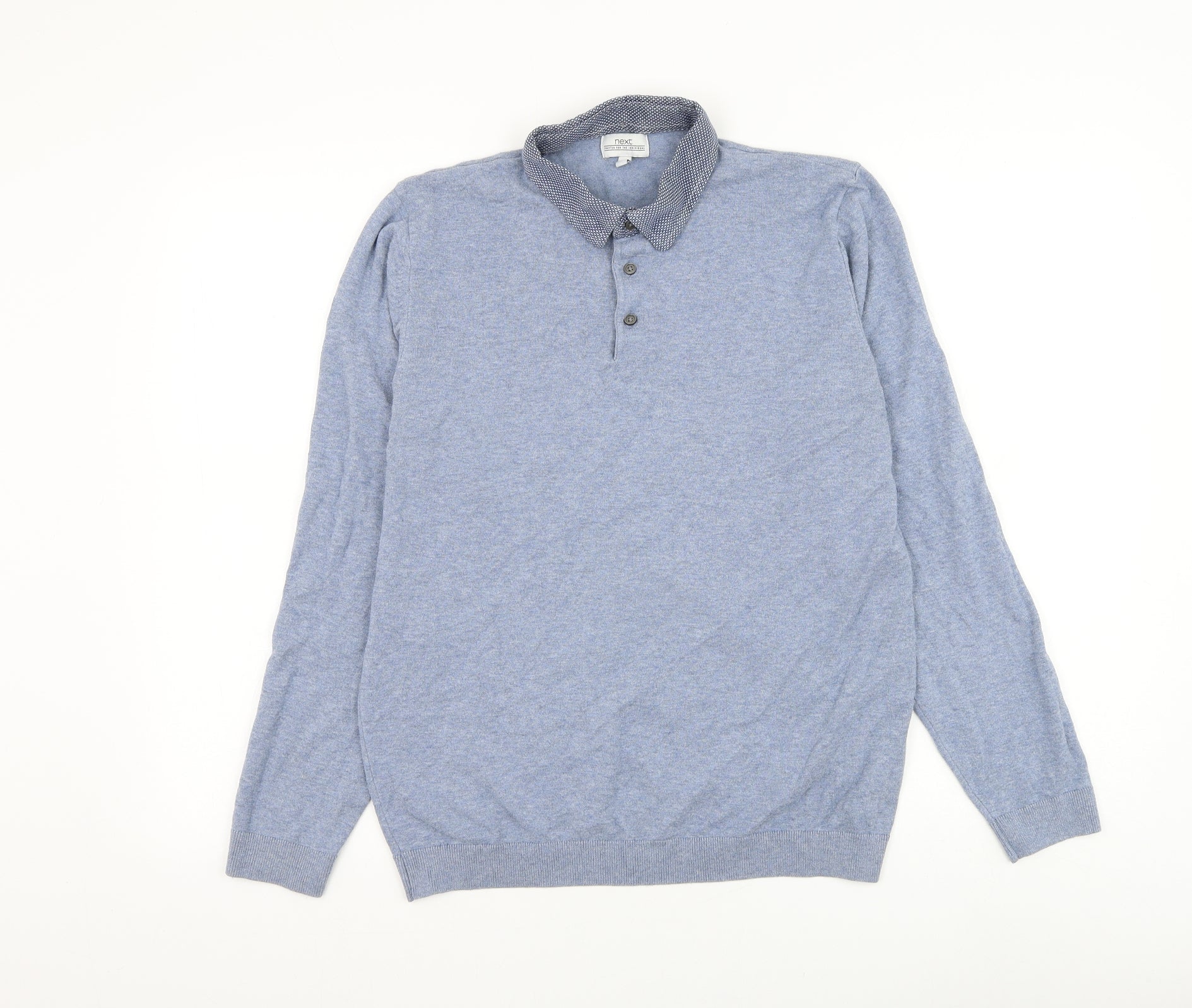 NEXT Mens Blue Collared Cotton Pullover Jumper Size M