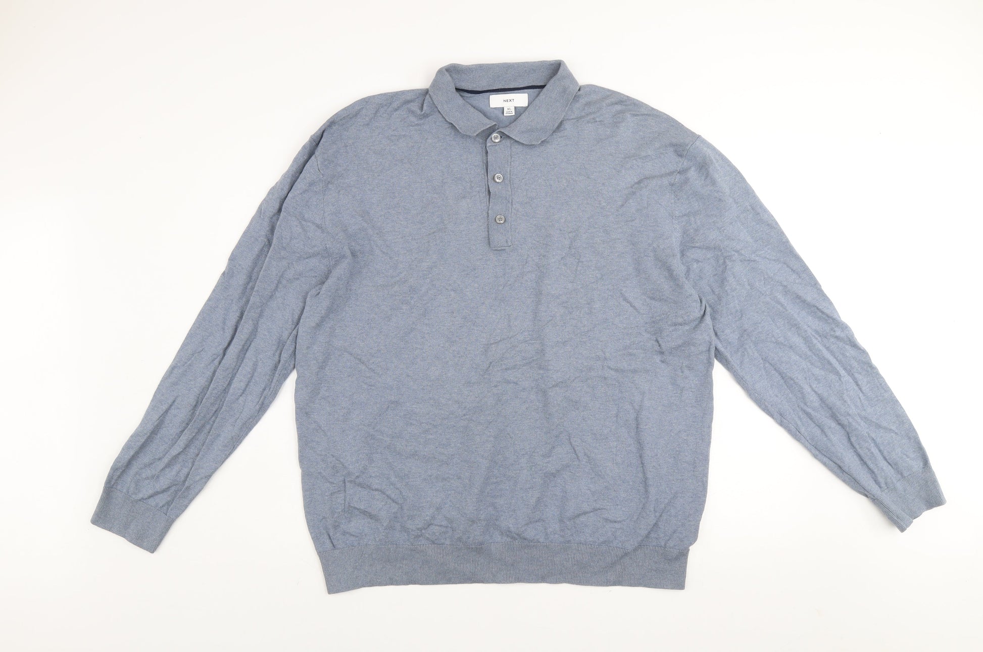 Next Men's Blue Collared Henley Cotton Blend Jumper XL