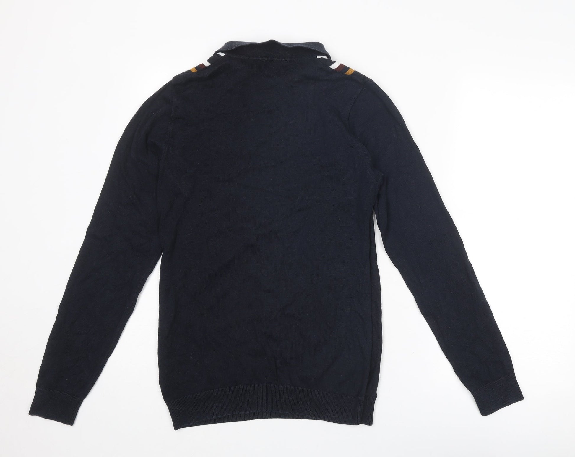NEXT Mens Blue Collared Striped Cotton Henley Jumper Size S Long Sleeve