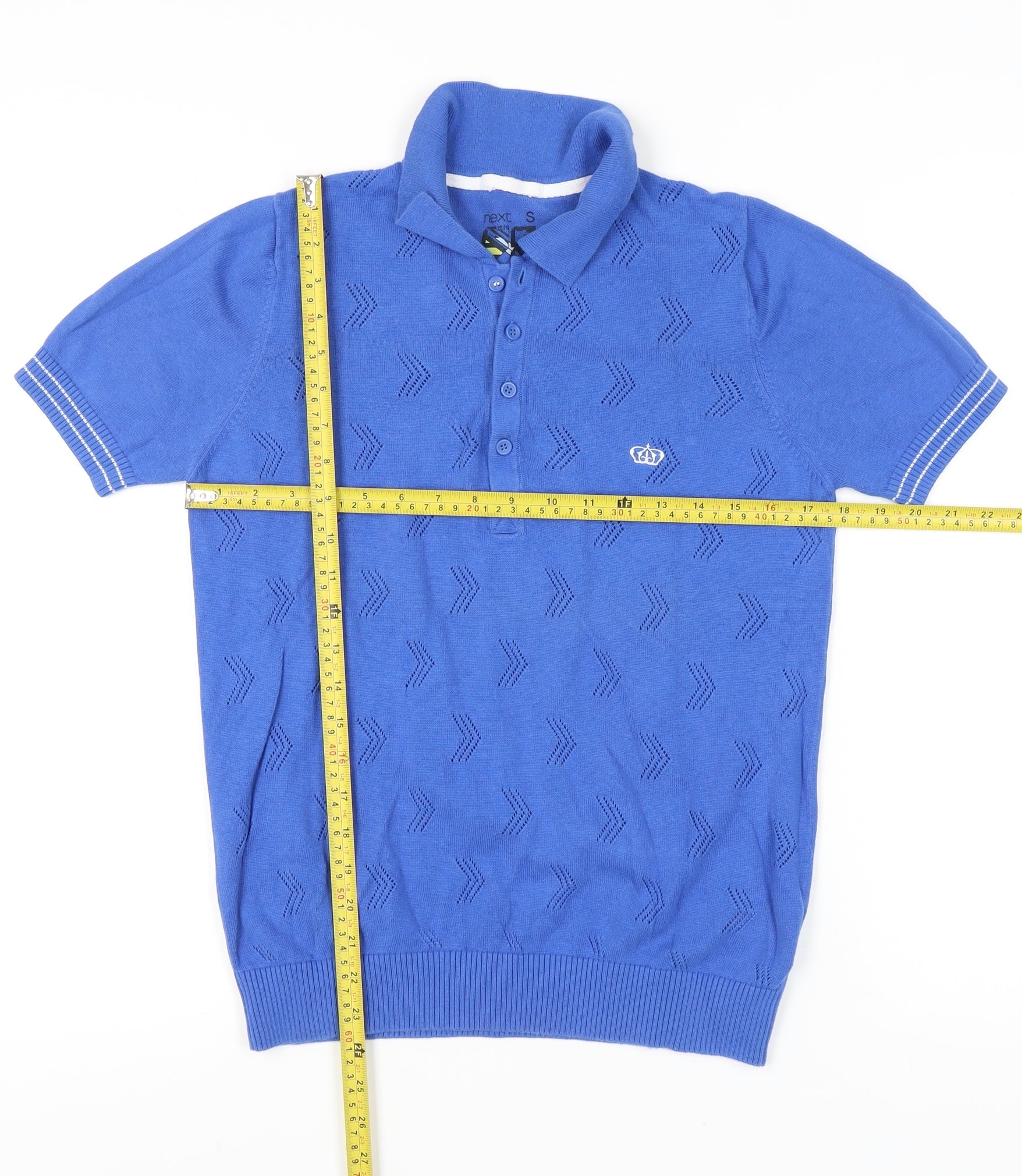 Next Men's Blue Geometric Knit Cotton Polo Shirt Size S