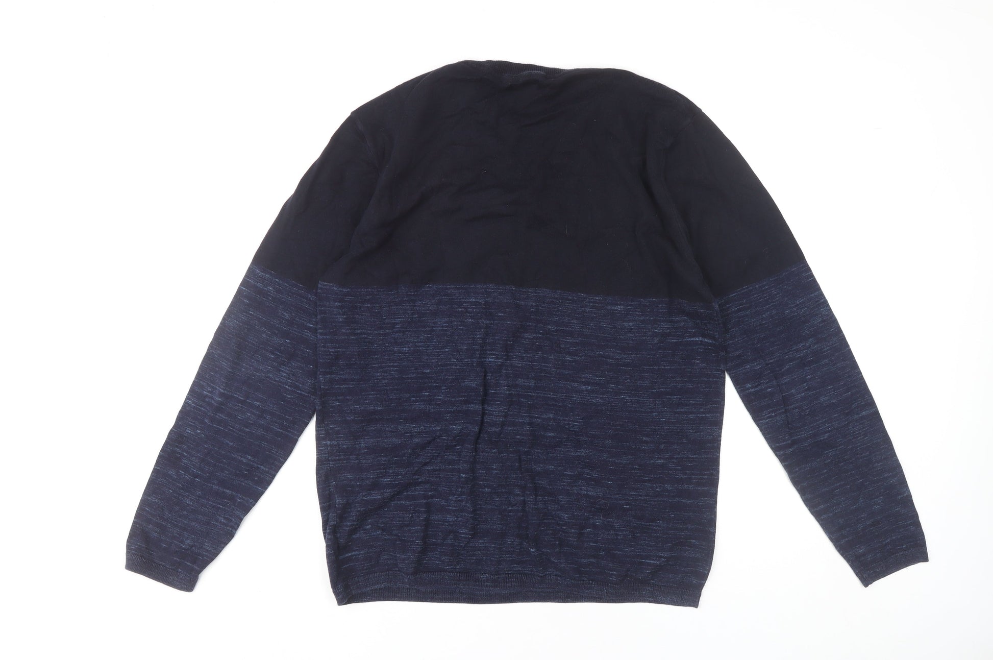 Next Mens Blue Knit Crew Neck Jumper Size L Cotton Blend