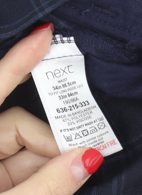 Next Men's Blue Plaid Trousers, Size 34, Zip Closure