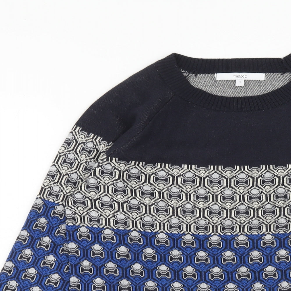 NEXT Mens Blue Round Neck Geometric Polyester Pullover Jumper Size S Long Sleeve