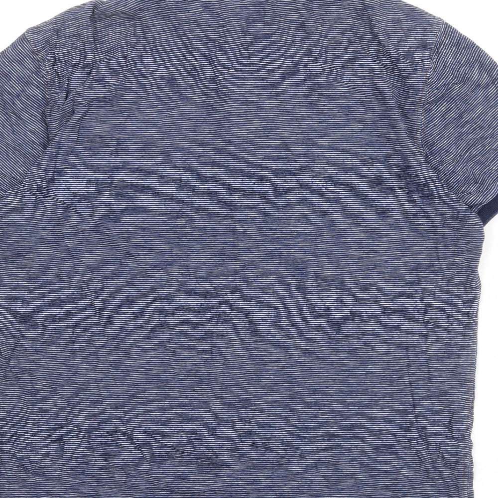 NEXT Mens Blue Striped 100% Cotton Polo Size M Collared Button