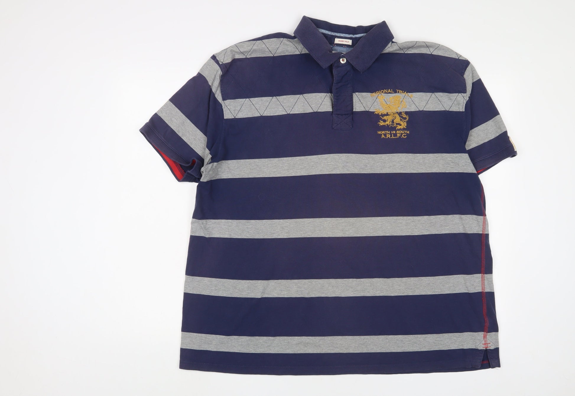 NEXT Mens Blue Striped Cotton Polo Size 2XL Collared Button - Embroidered