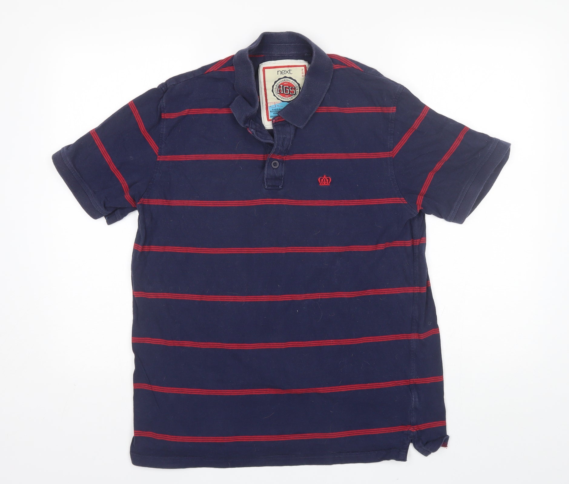 NEXT Mens Blue Striped Cotton Polo Size L Collared