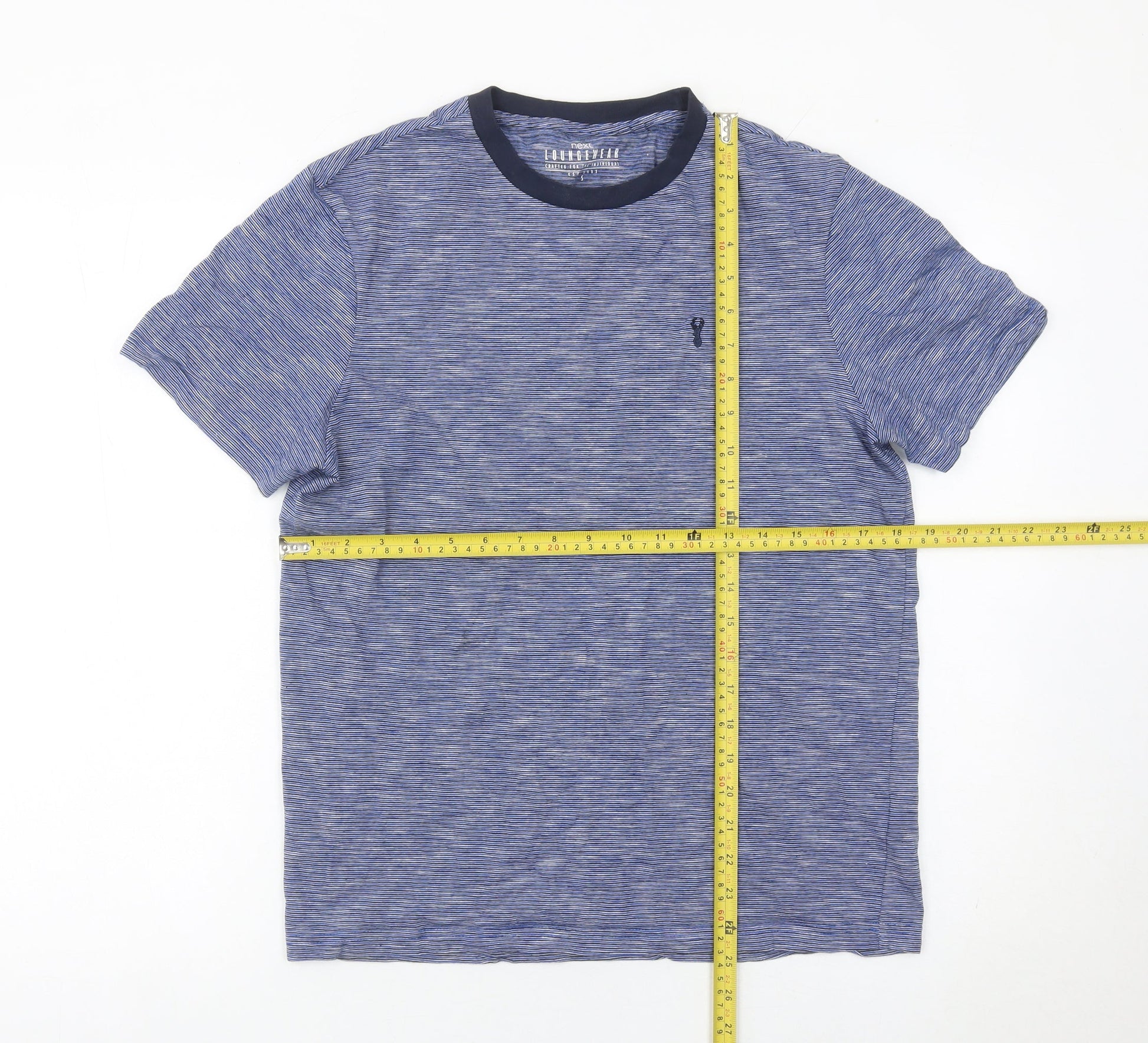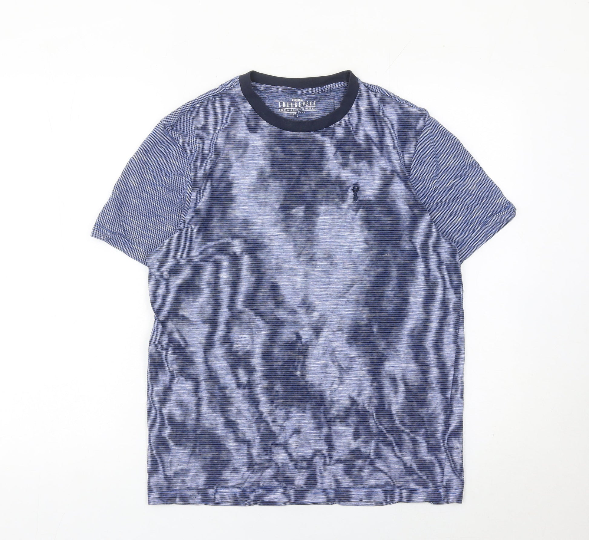 Next Men's Blue Striped Crew Neck Cotton T-Shirt Size S Regular Fit