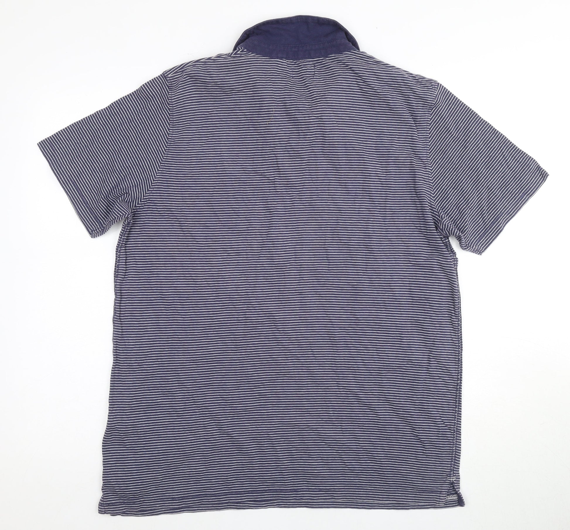 Next Men's Blue Striped Polo, Large, Casual Short Sleeve