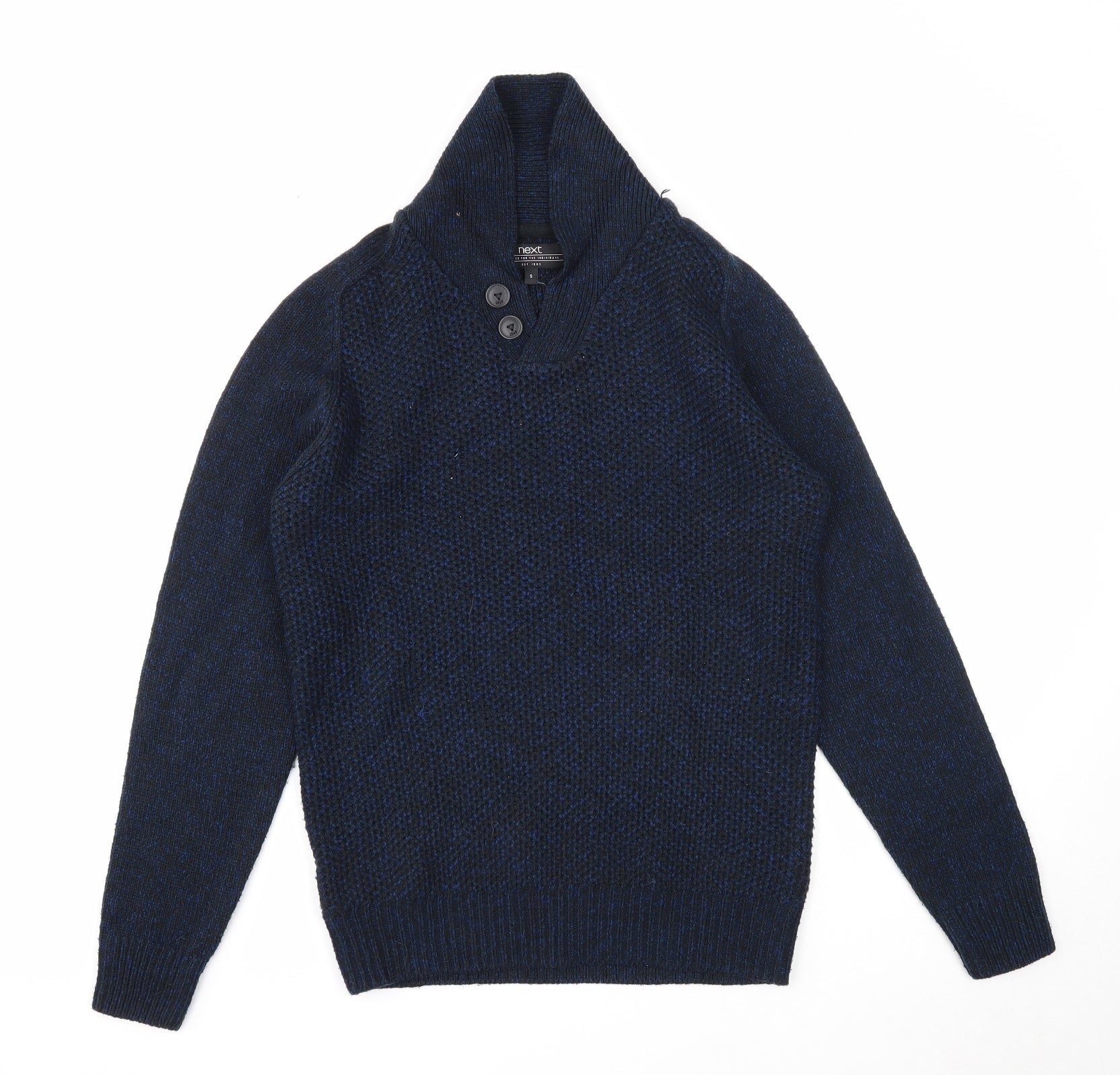 NEXT Mens Blue V-Neck Acrylic Henley Jumper Size S Long Sleeve