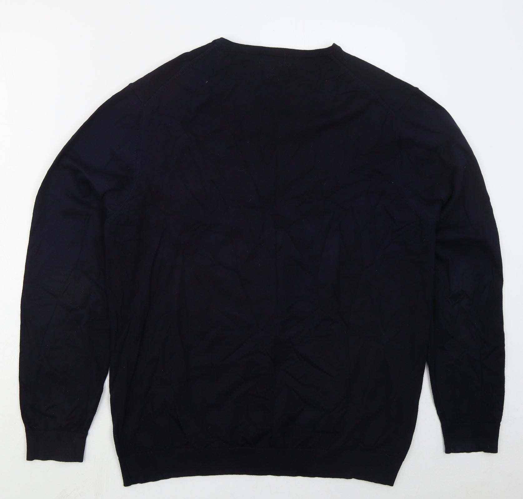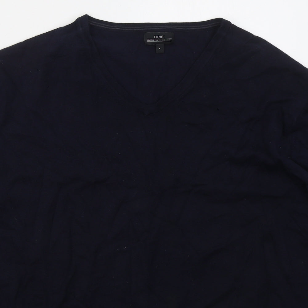 NEXT Mens Blue V-Neck Cotton Pullover Jumper Size L