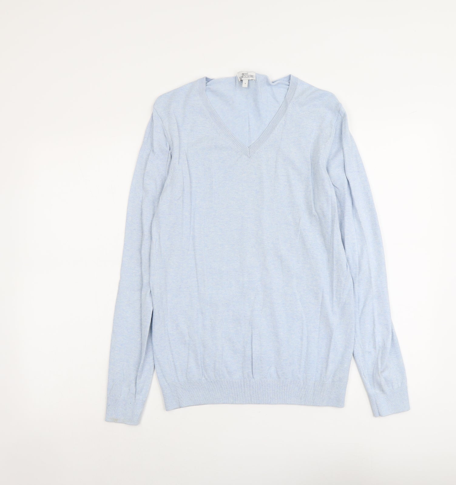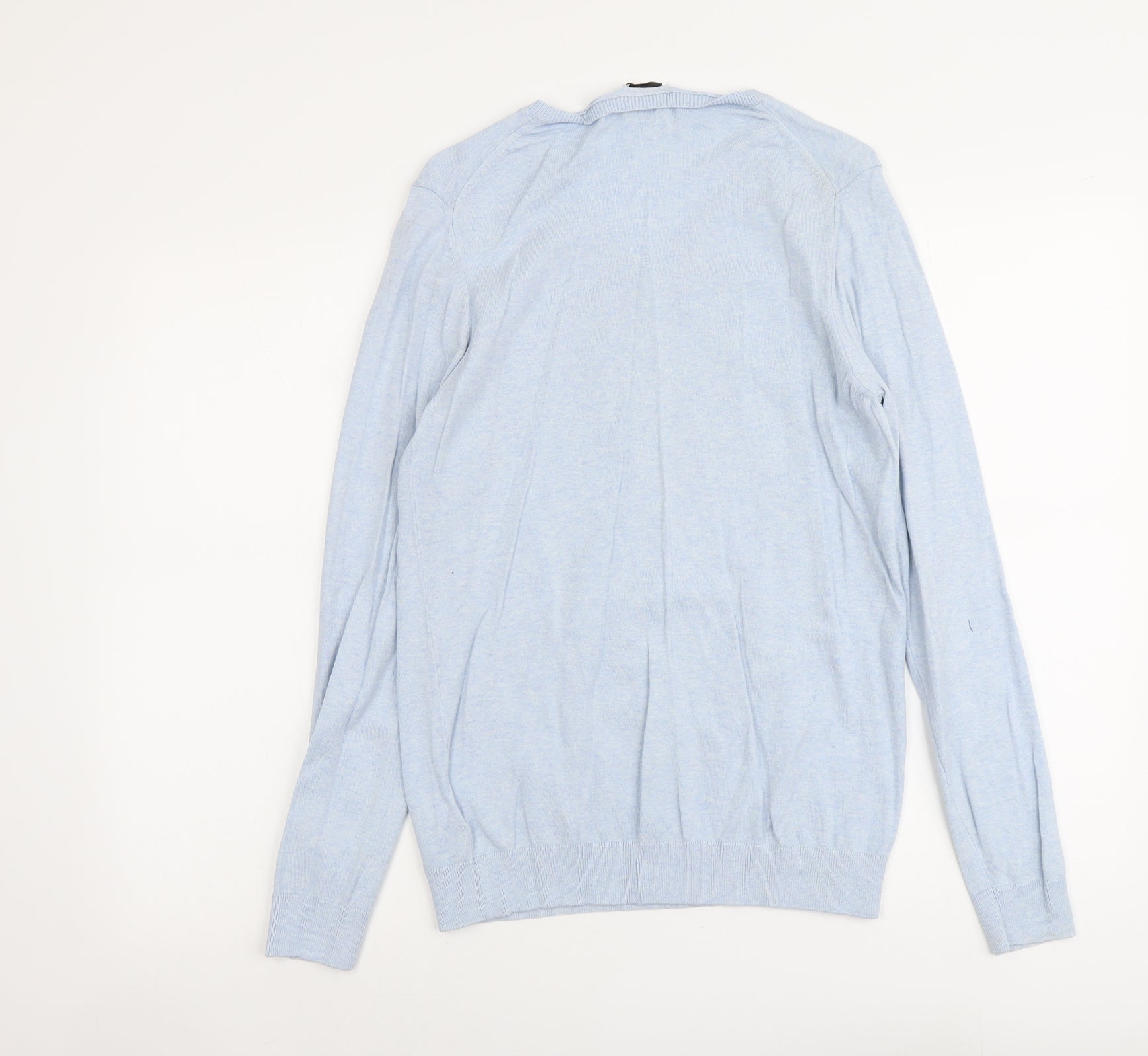 NEXT Mens Blue V-Neck Cotton Pullover Jumper Size S Long Sleeve