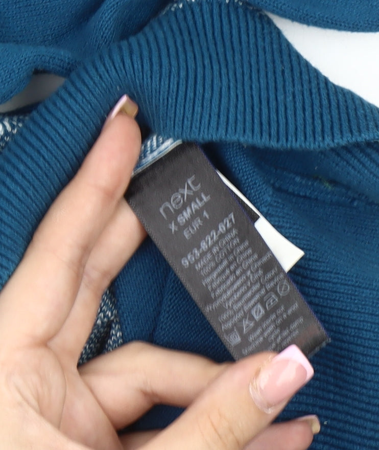 Next Men's Blue XS Henley Jumper, Geometric Pattern
