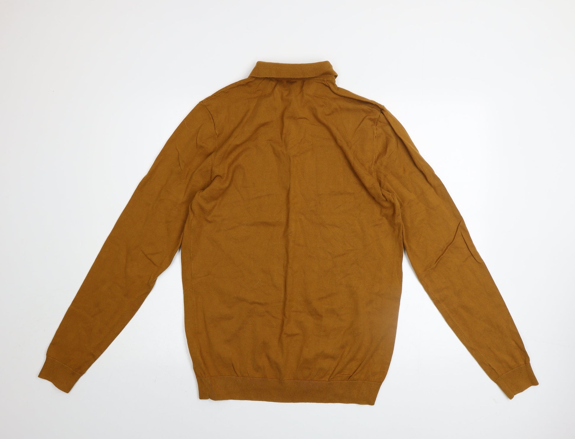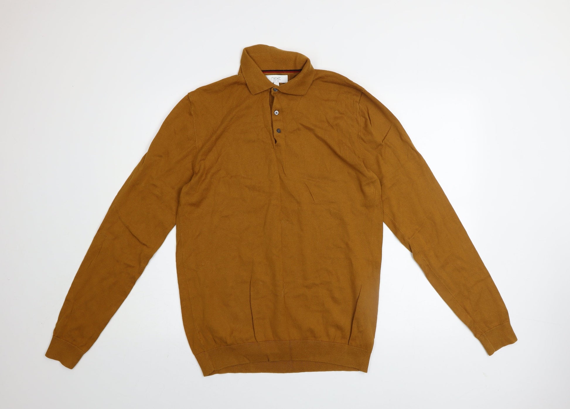 Next Men's Brown Collared Henley Jumper Size M Cotton Knit