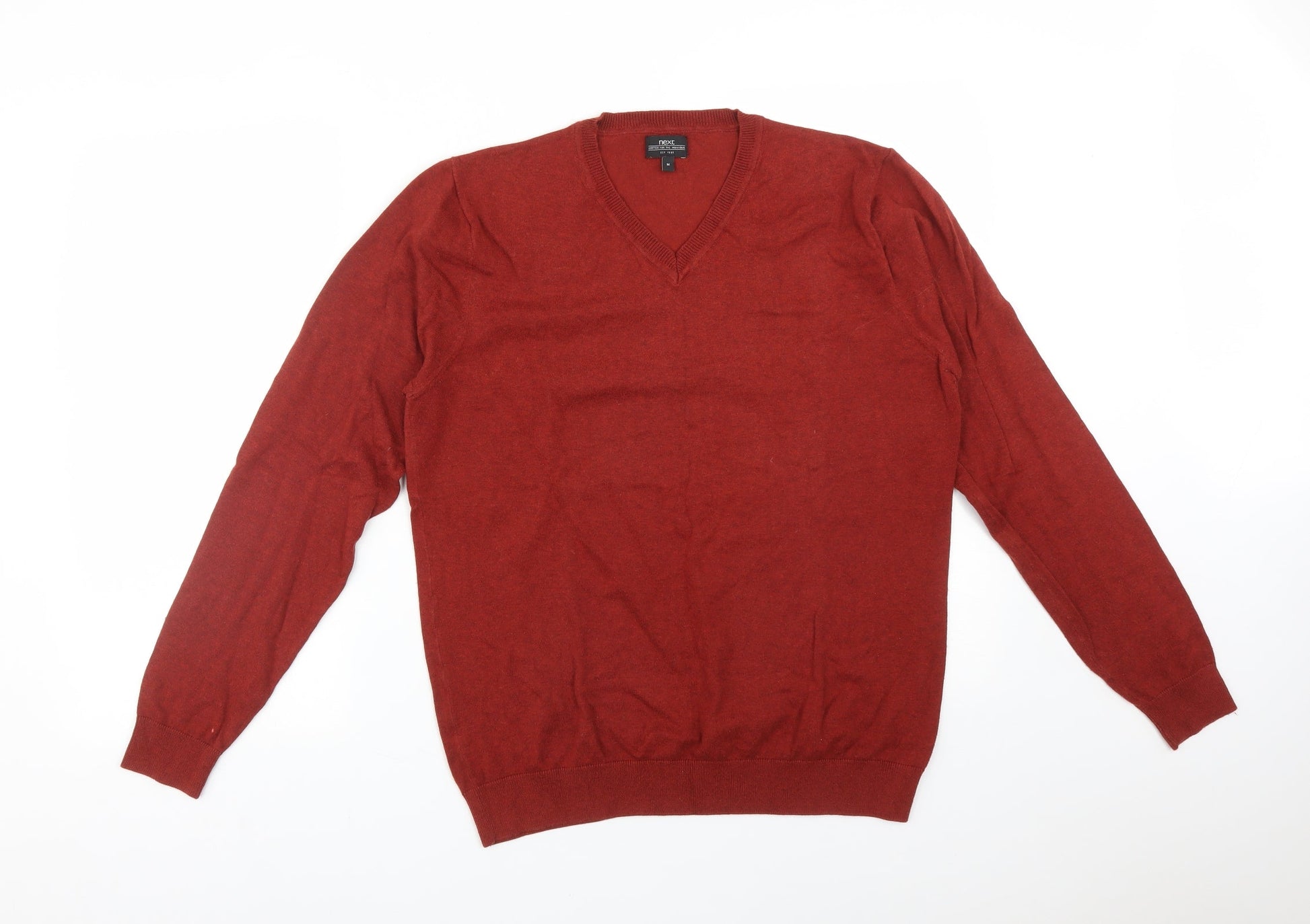 NEXT Mens Brown Cotton T-Shirt Size M V-Neck