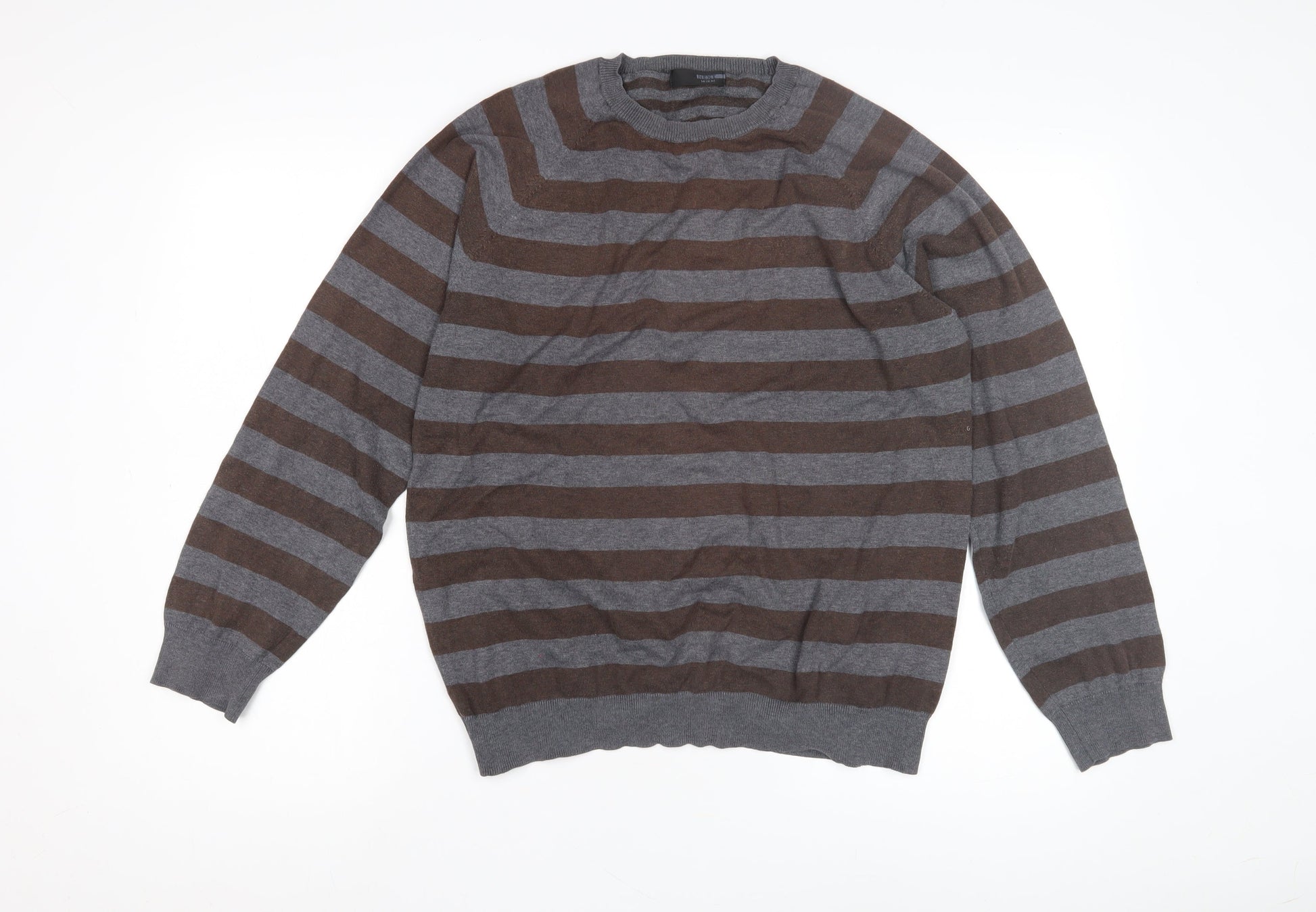 Next Men's Brown Grey Striped Pullover Jumper M