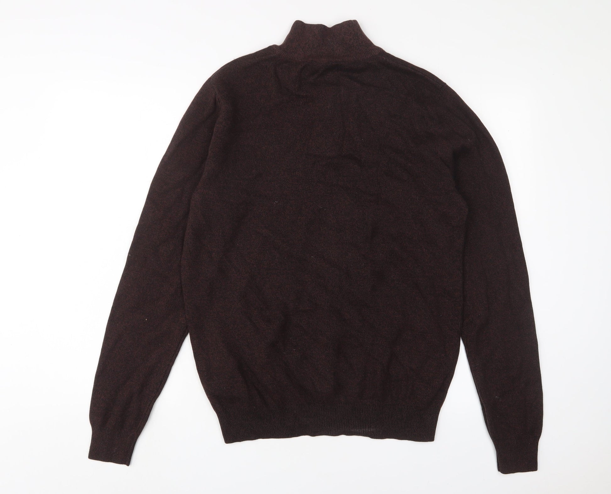 NEXT Mens Brown High Neck Cotton Pullover Jumper Size M Long Sleeve - Embroidered