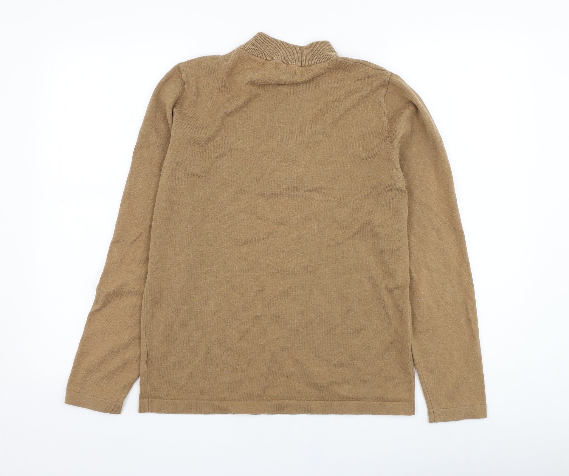 NEXT Mens Brown Mock Neck Cotton Henley Jumper Size S