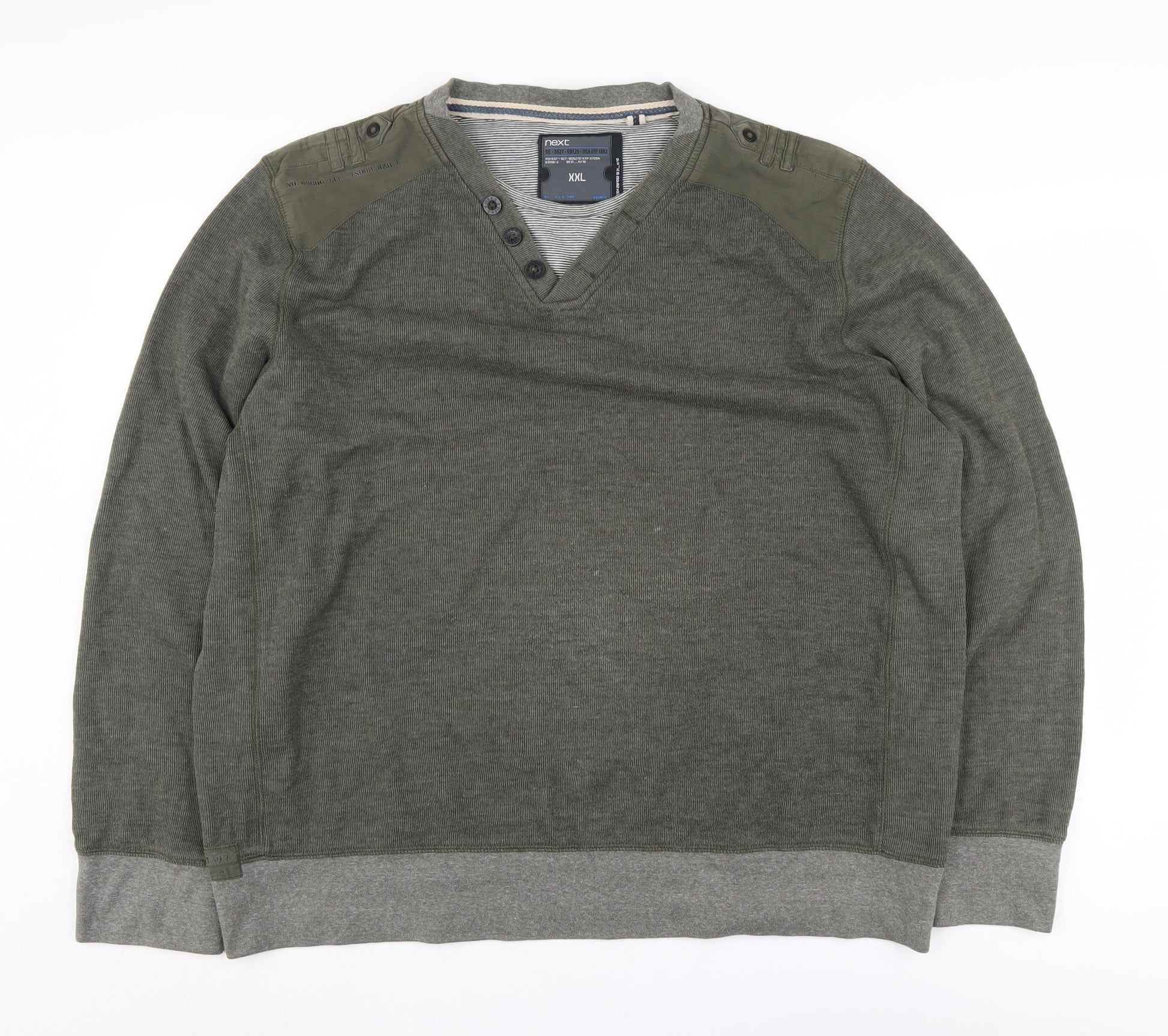 Next Men's Green 2XL Henley Jumper, V-Neck, Casual Wear