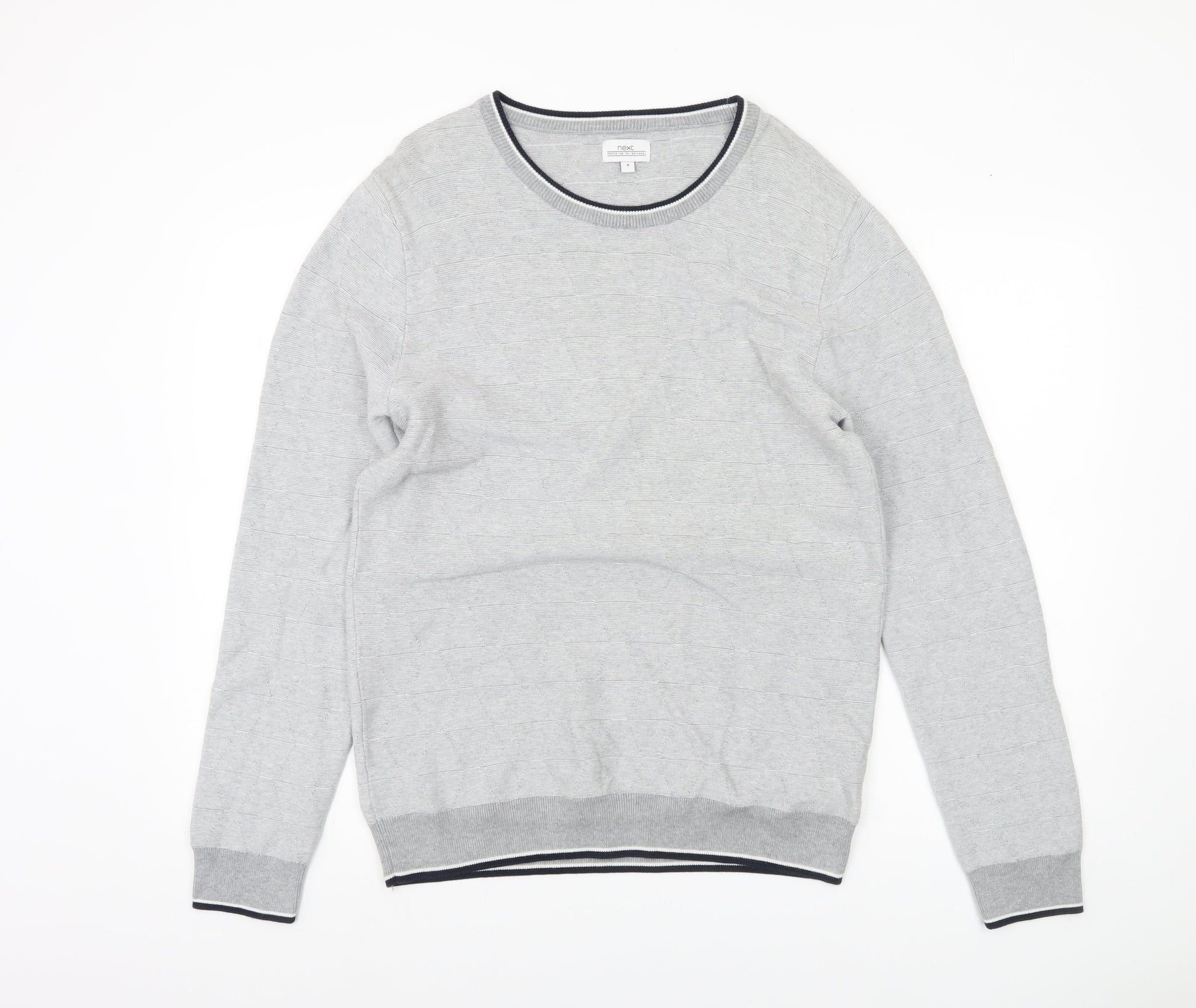 Next Mens Grey Cotton Crew Neck Pullover Jumper Size M Regular Fit