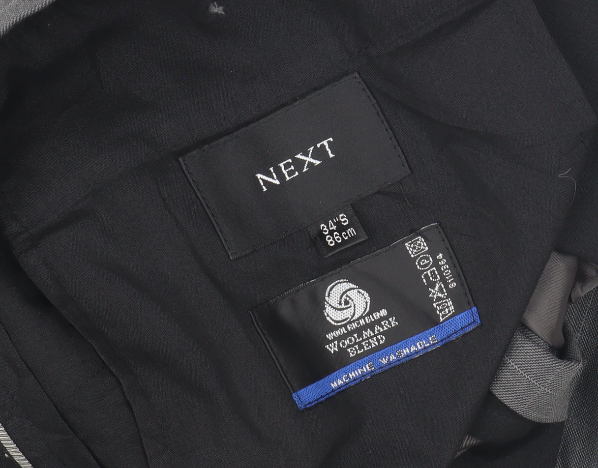 Next Men's Grey Dress Pants 34S Pleated Check Formal