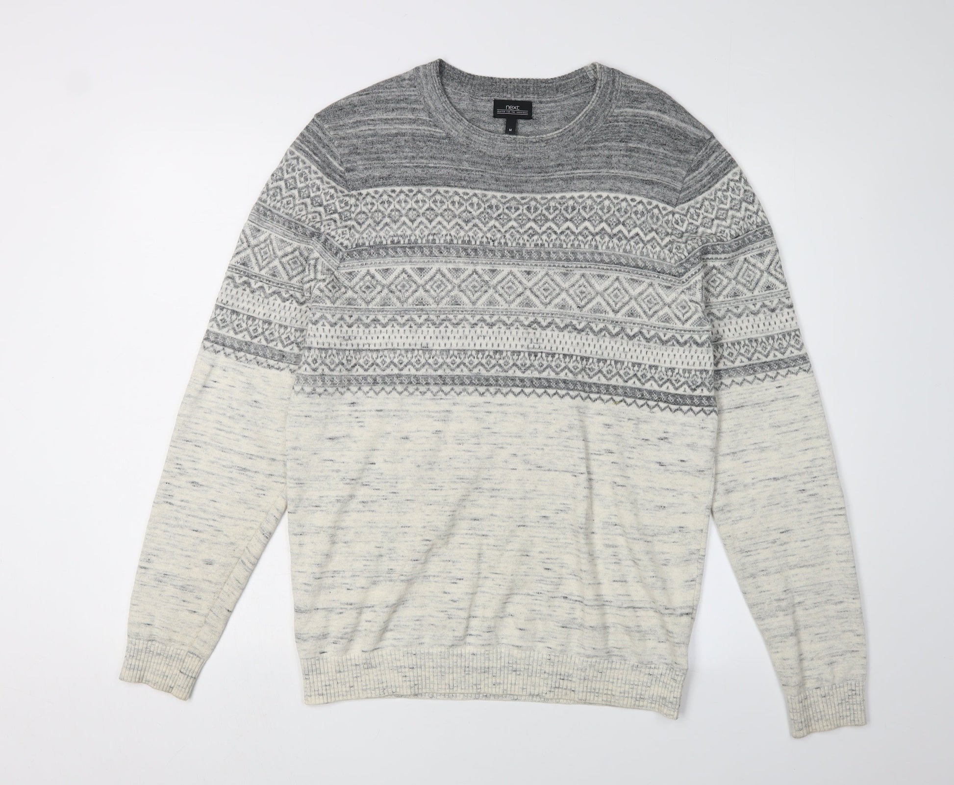 Next Men's Grey Fair Isle Pullover Jumper, Size M