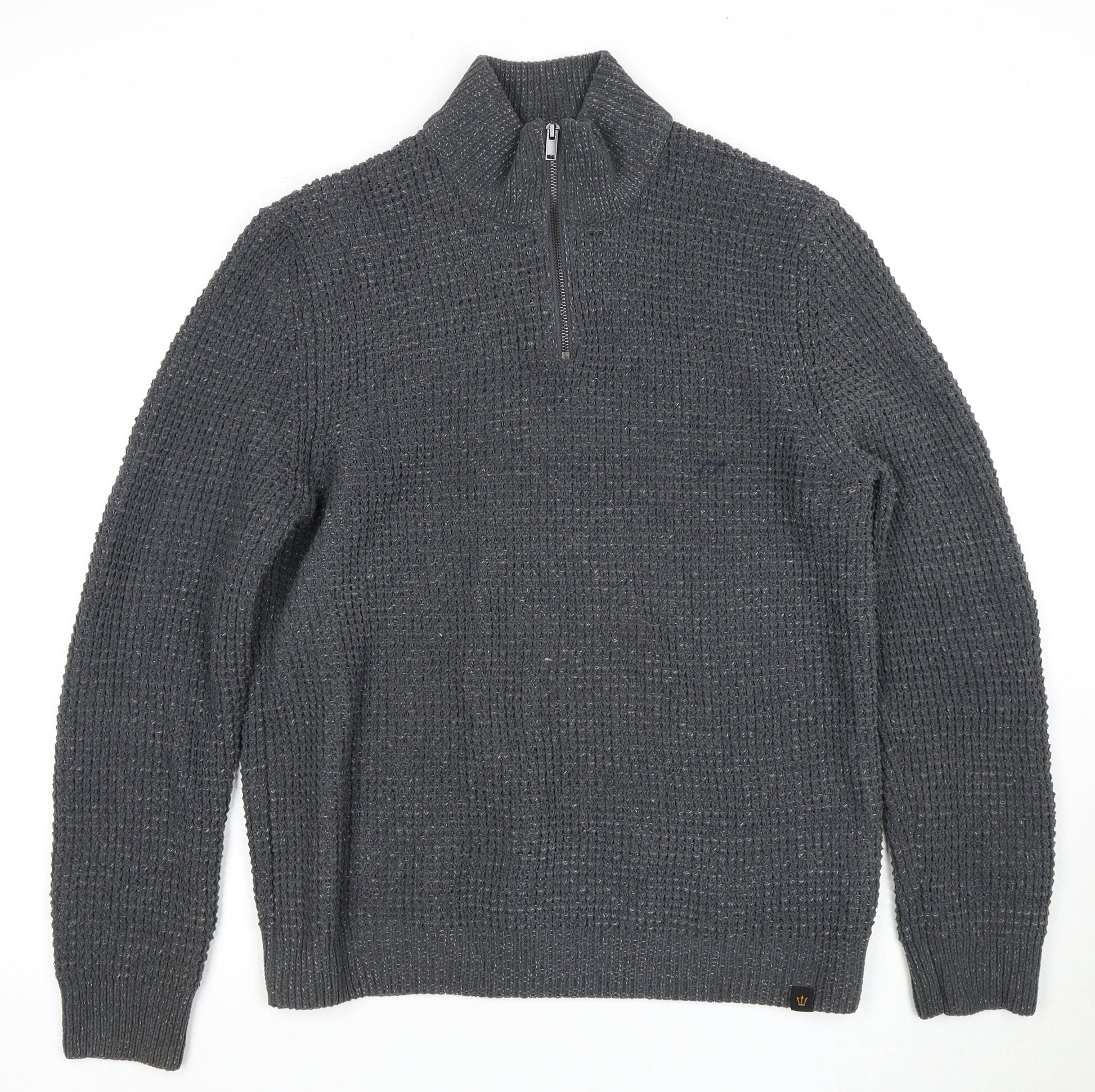 Next Men's Grey Full Zip Jumper, Size L, High Neck, Casual