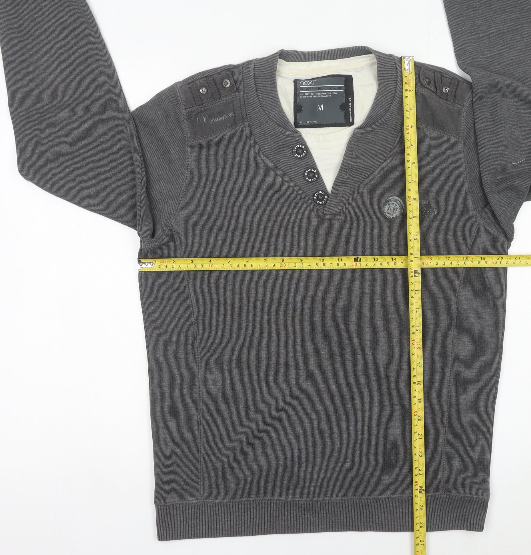 Next Mens Grey Henley Jumper Size M Cotton Blend Long Sleeve