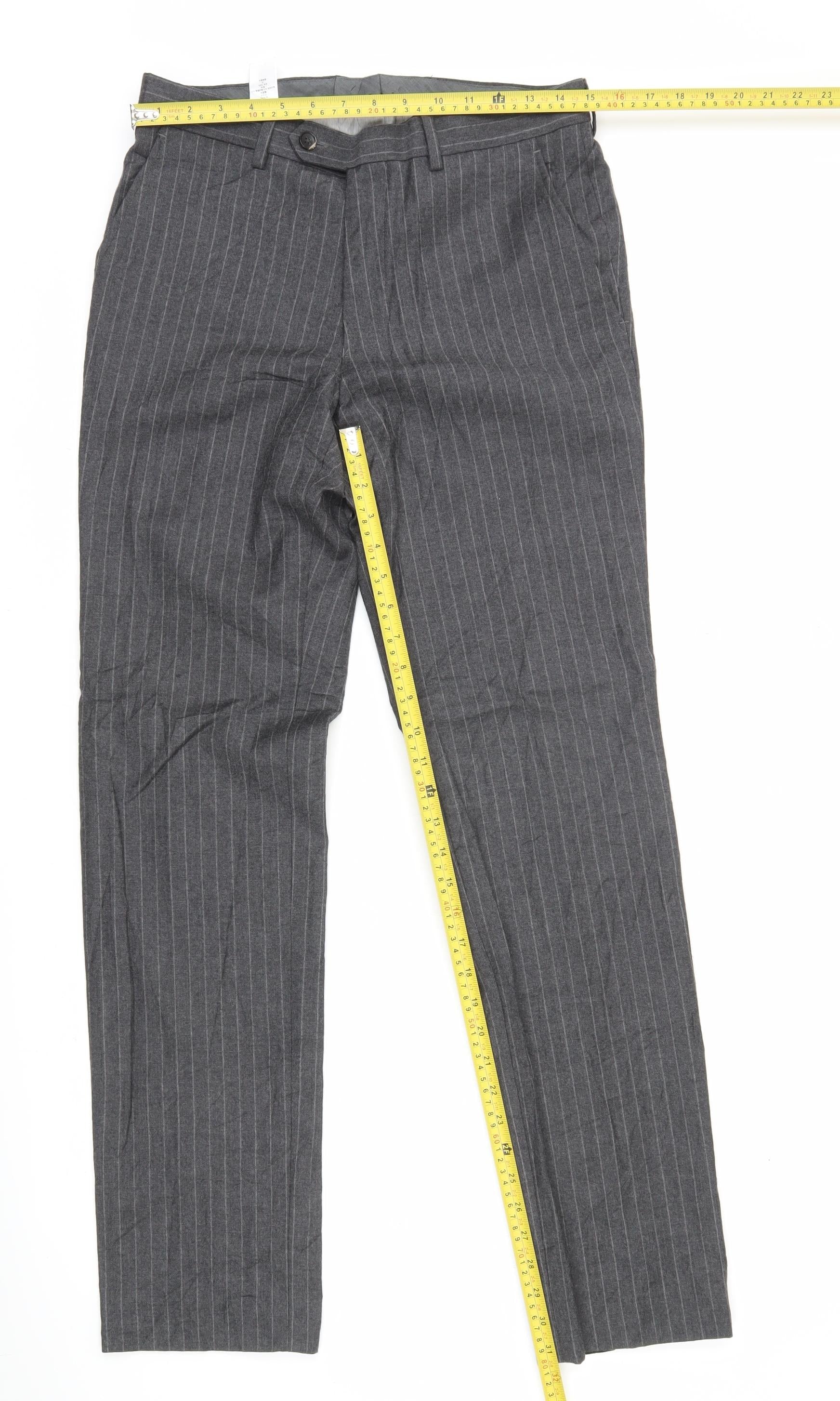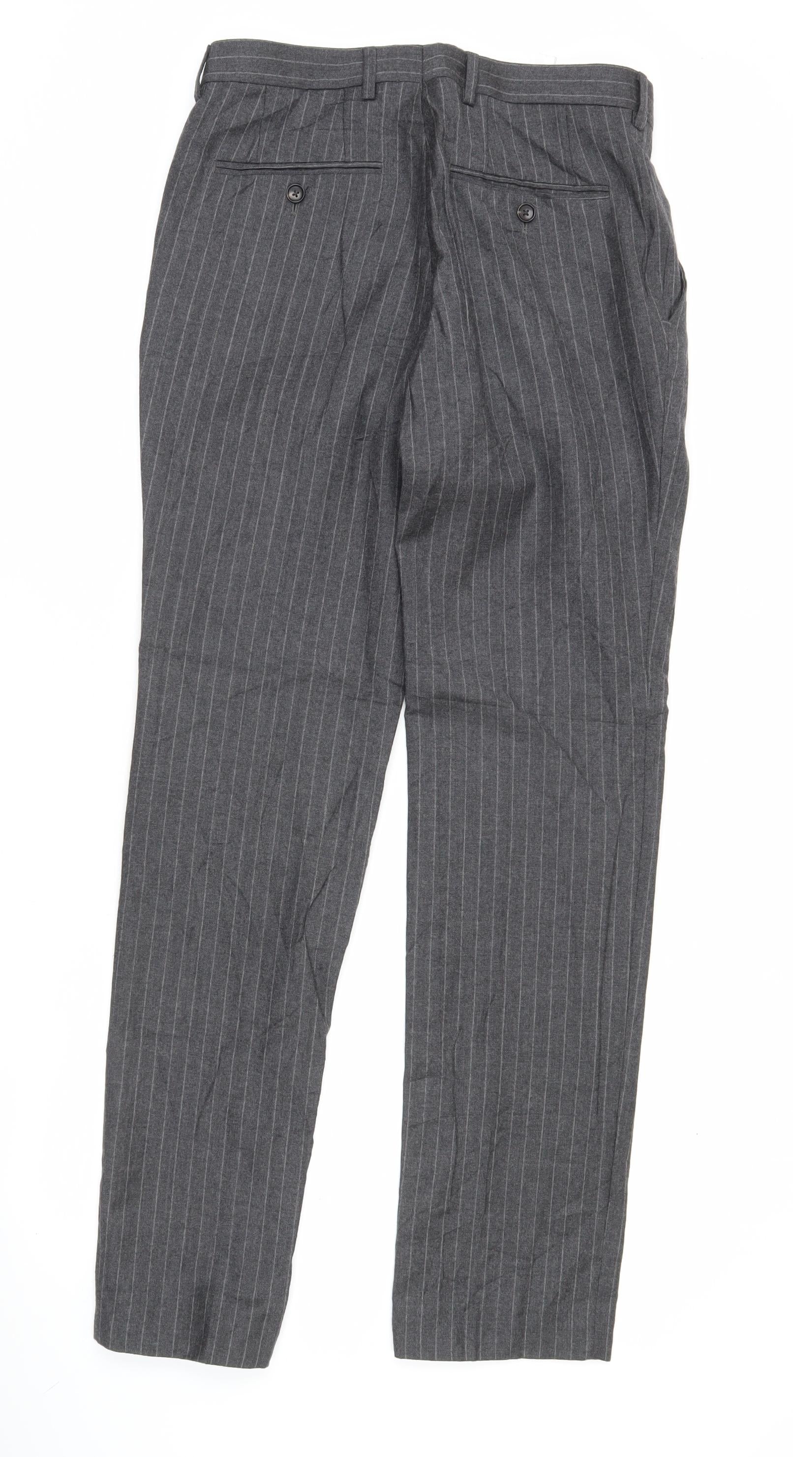 Next Men's Grey Pinstripe Wool Dress Trousers 30x33 Straight Leg