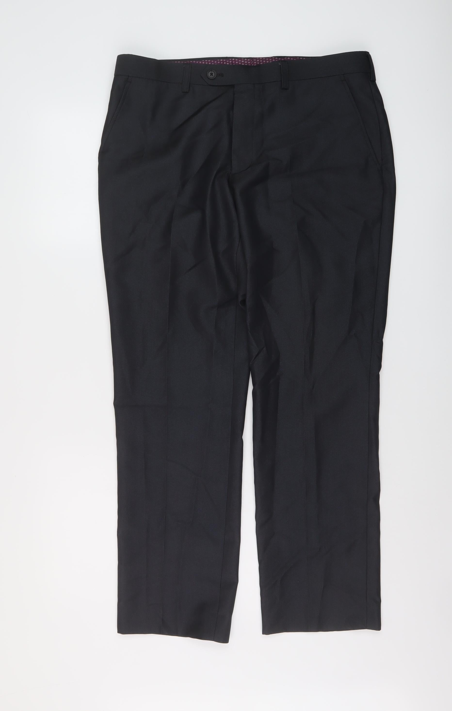 NEXT Mens Grey Polyester Trousers Size 34 in L29 in Regular Button
